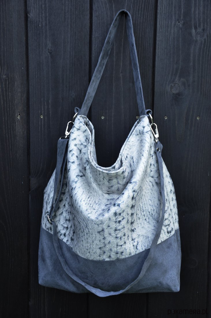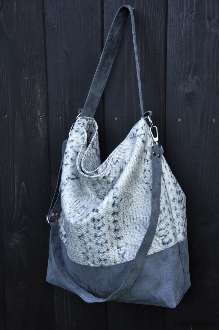 uszyta z workowatej tkaniny w połączeniu z alcantarą.