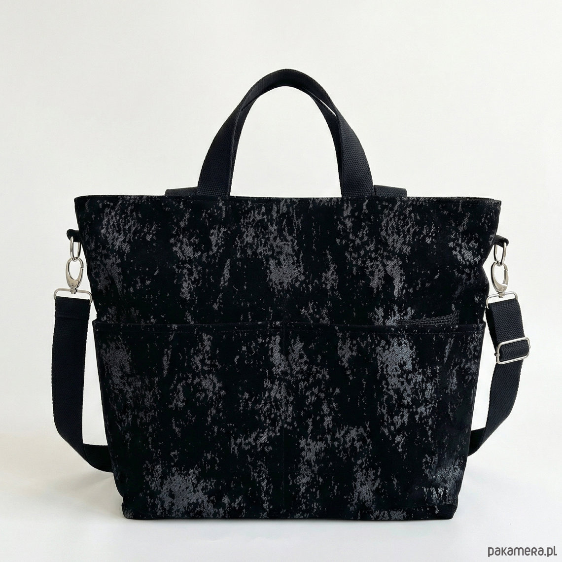Duża torba z jeansu powlekanego welurem "Mili Move" - czarna
