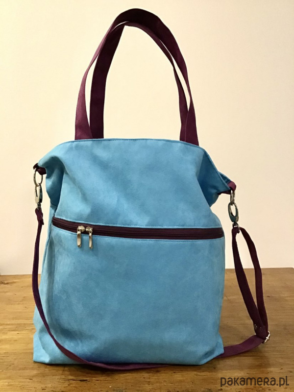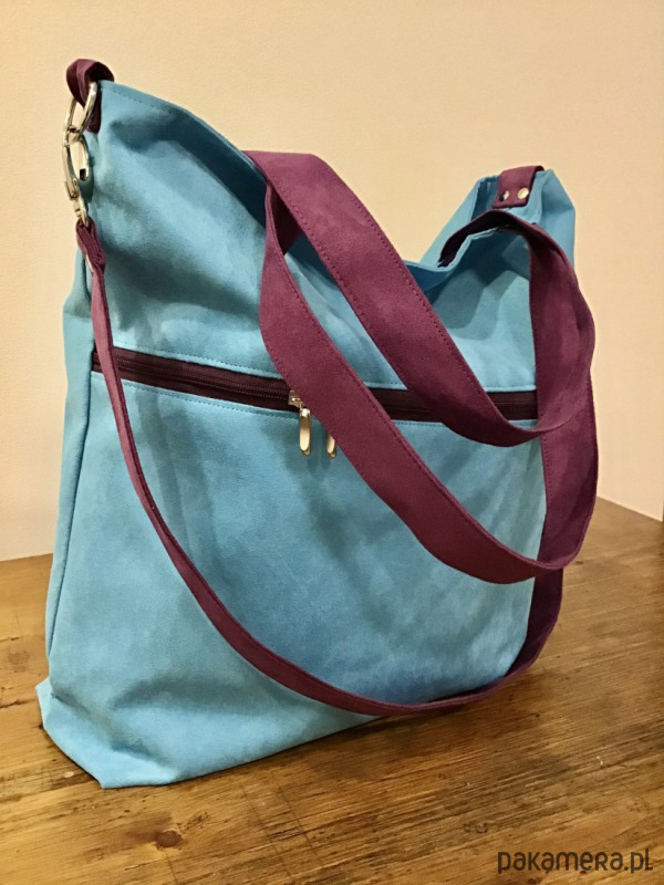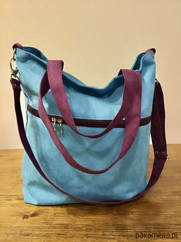 Duża torba z kieszenią na zamek - błękit, fiolet