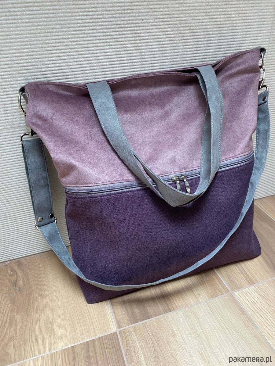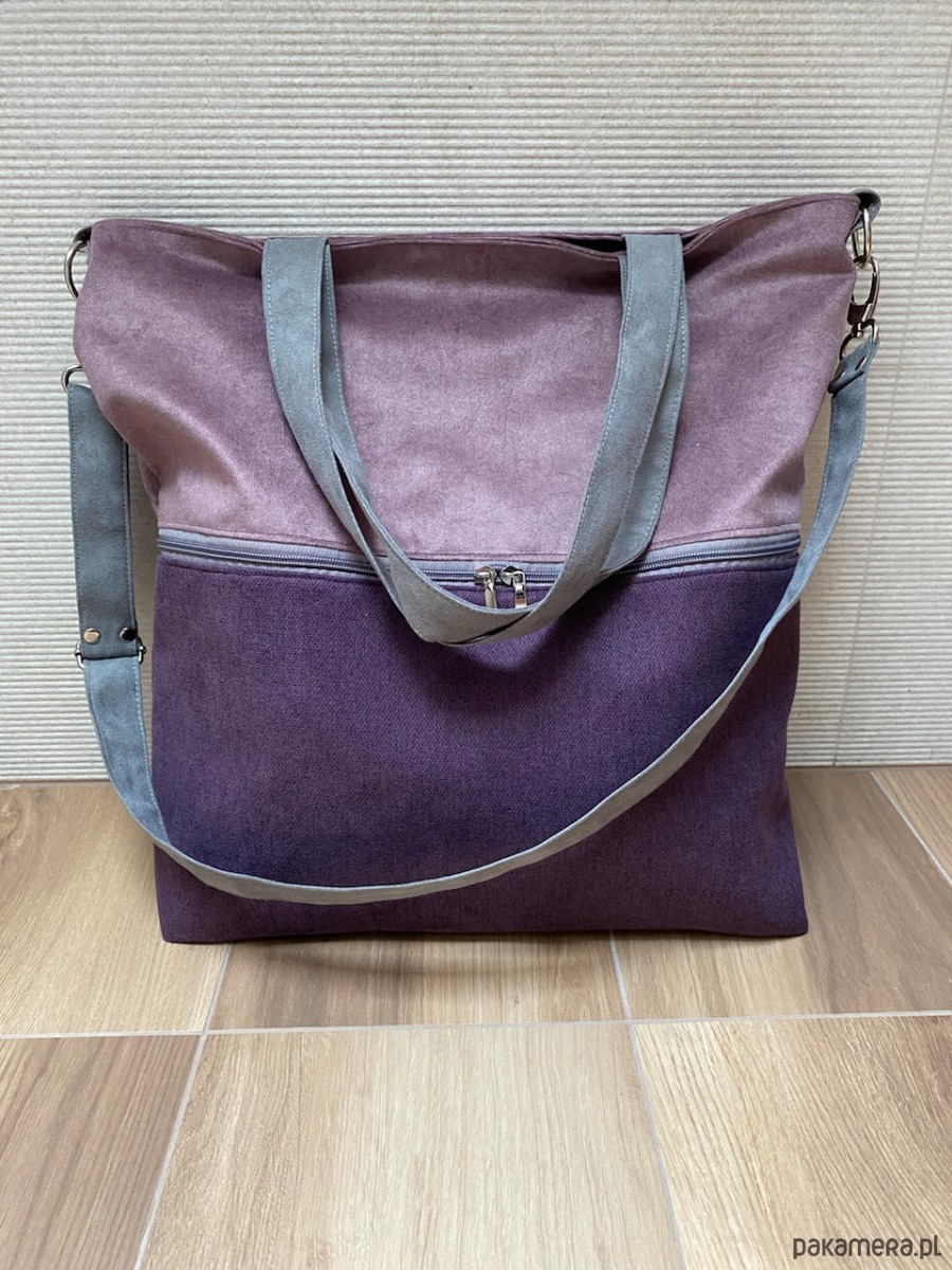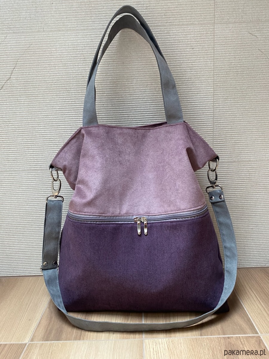 Duża torba z zapinaną kieszenią - wrzos, fiolet, szary