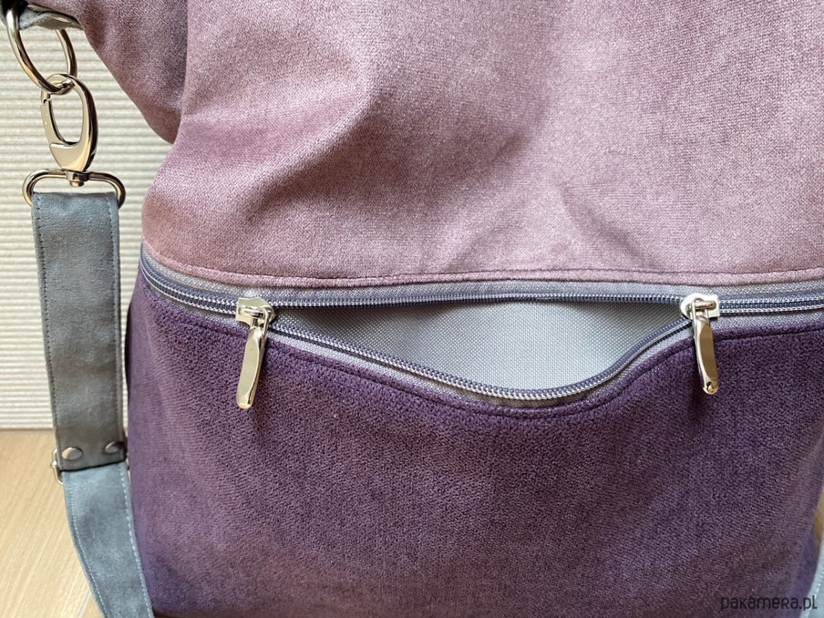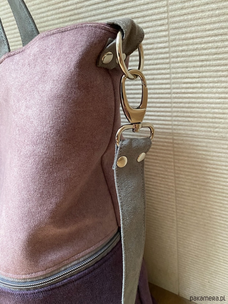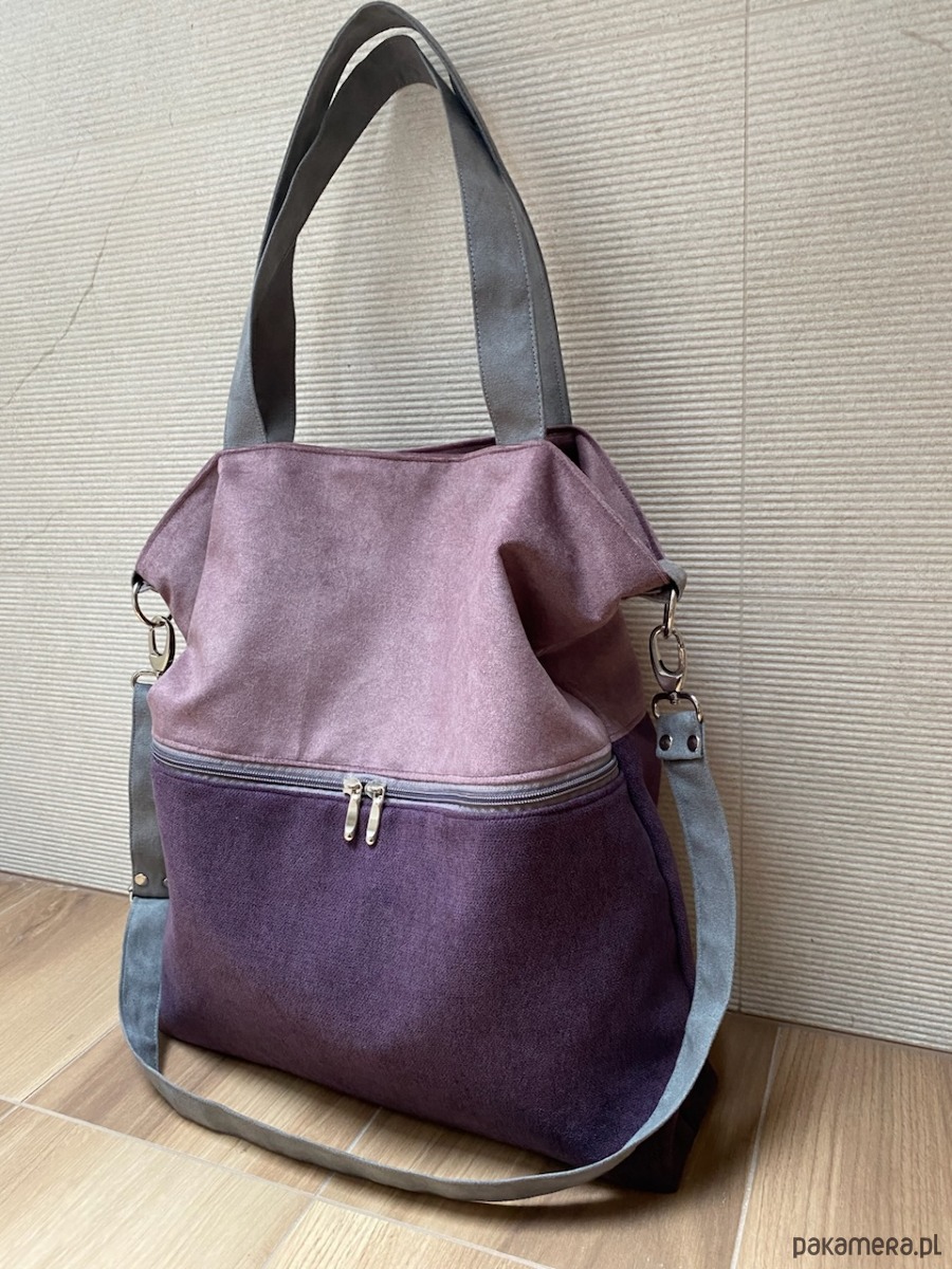 Duża torba z zapinaną kieszenią - wrzos, fiolet, szary
