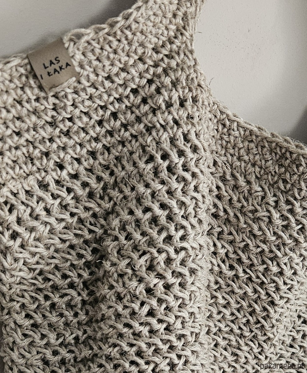 Ta torba to coś więcej niż dodatek – to mała opowieść o naturze, prostocie i ręcznej pracy. Wykonana w całości ze sznurka lnianego, bez podszewek, bez zbędnych ozdób – taka, jaka miała być. Surowa, ale miękka. Mocna, ale lekka.