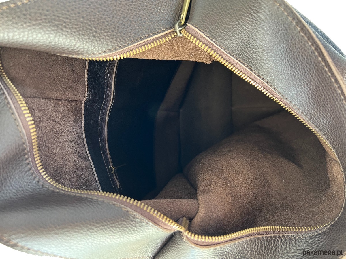 Torba wykonana jest w 100% z wysokiej jakości skóry naturalnej. Wewnątrz torby znajduje się kieszeń zapinana na zamek. Jest duża i pojemna! Torbę można nosić na ramieniu lub w dłoni. Zmieścisz w niej wiele produktów codziennego użytku.