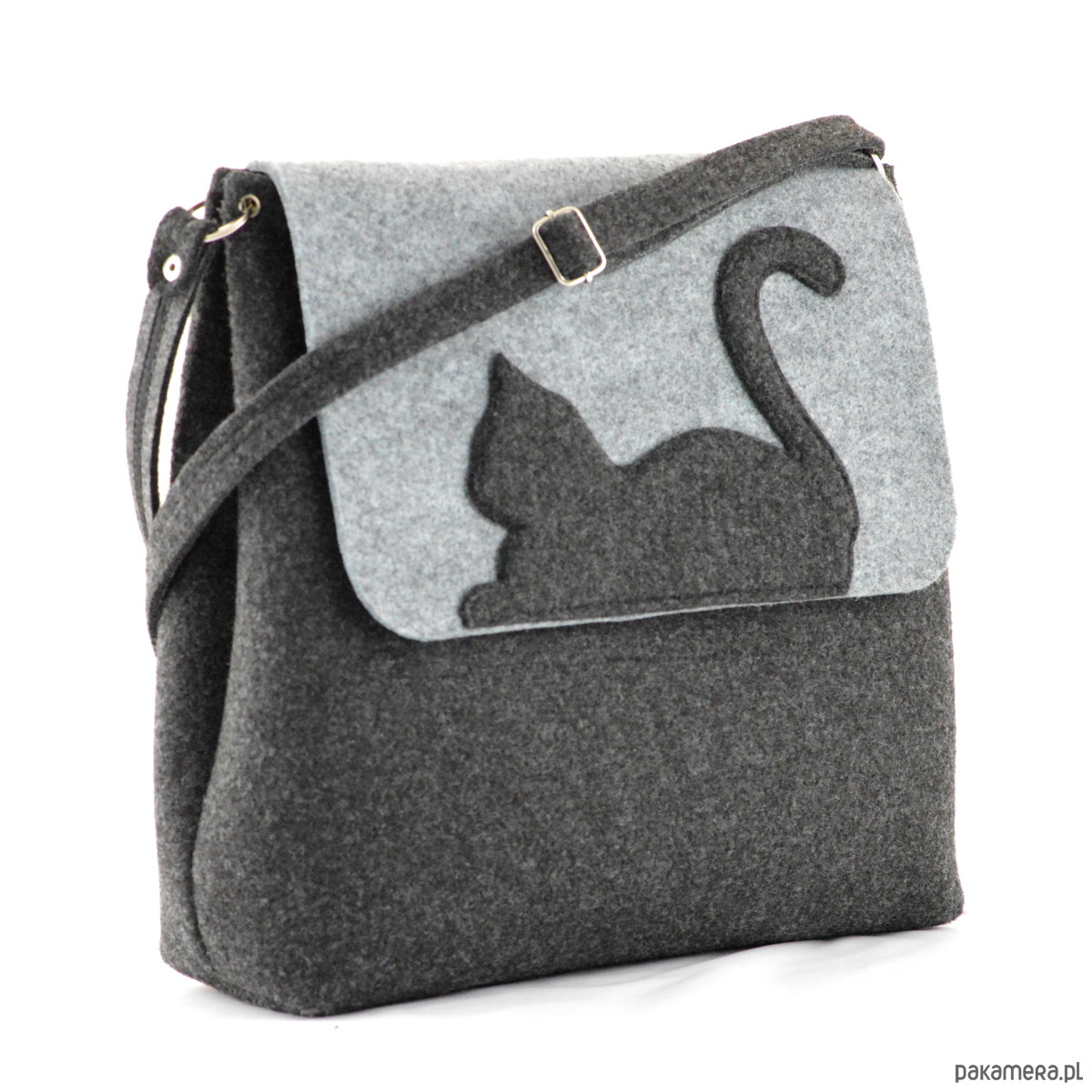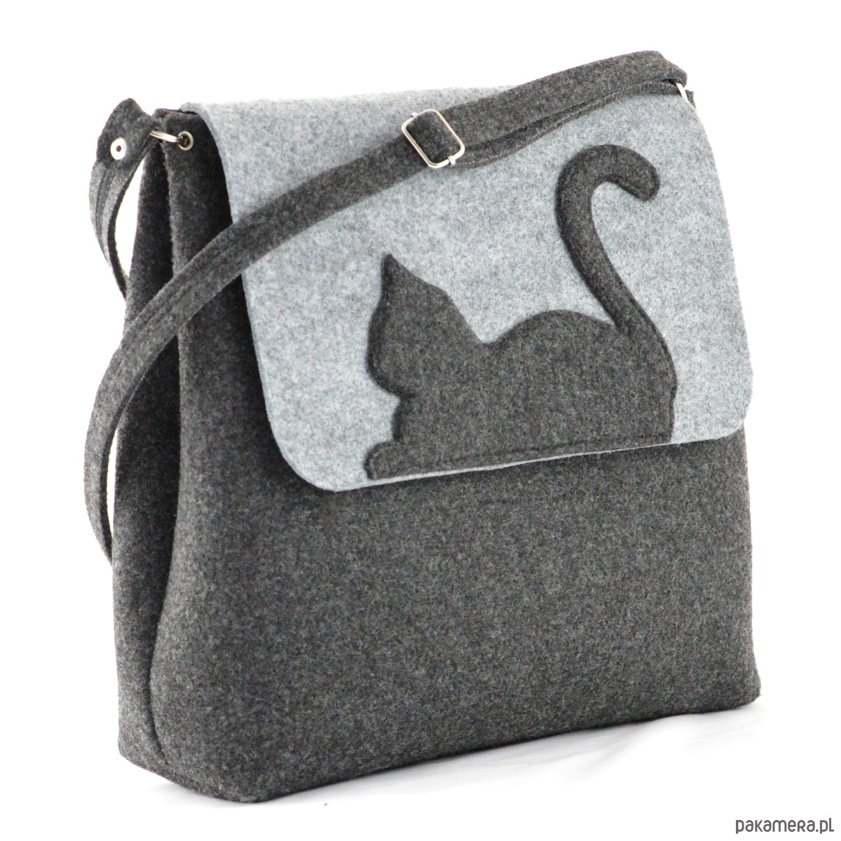 Duża Torebka Filcowa - Listonoszka z Kotem