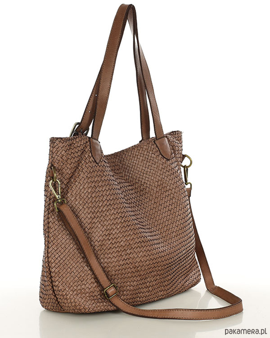 Duża torebka pleciona na ramię shopperka skórzana - brąz