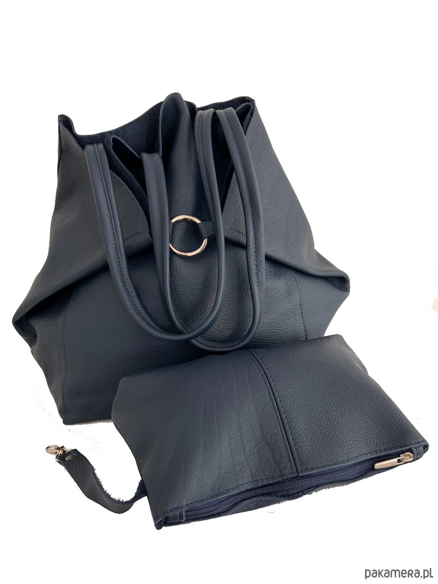 Torebka wykonana jest w 100% ze skóry naturalnej. Solidna, funkcjonalna, zgrabna i praktyczna. Jednokomorowa, w środku posiada jedną kieszeń na suwak. Dołączona jest do niej skórzana saszetka widoczna na zdjęciach, którą można odpiąć od torebki. Klasyczny fason sprawia, że torebka jest idealna do noszenia na co dzień. Świetnie wyglądają ubrane do niej szpilki jak i obuwie sportowe, w obu wersjach wygląda zjawiskowo.