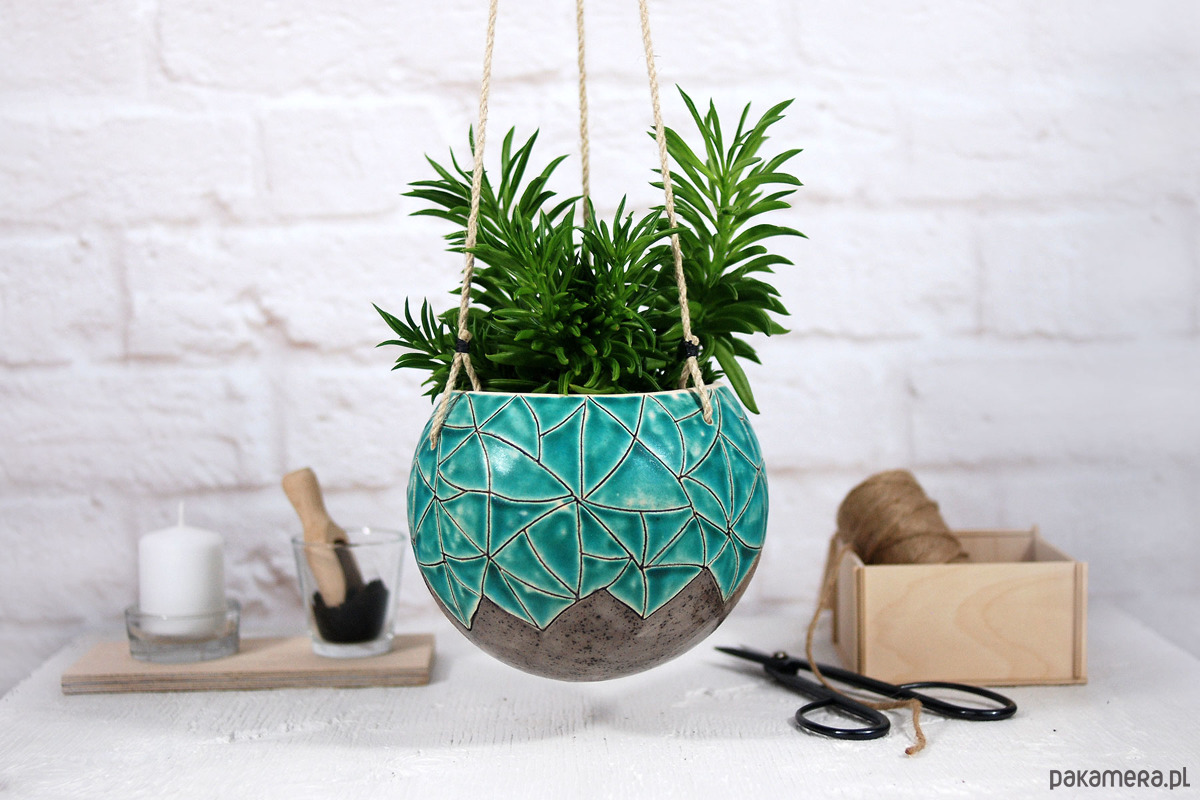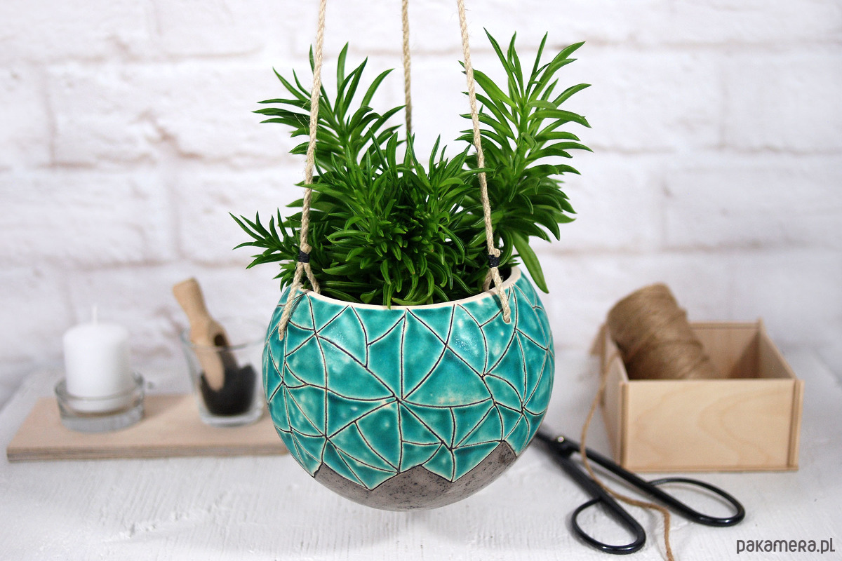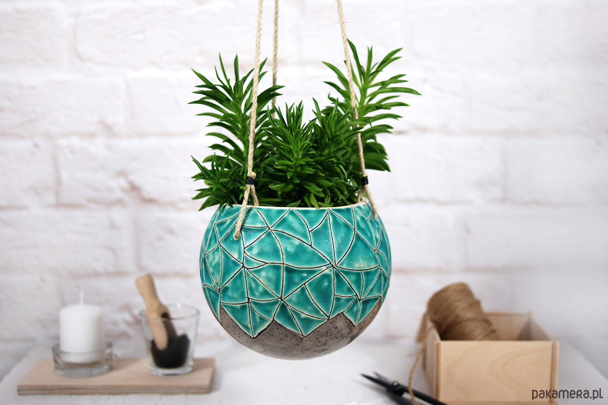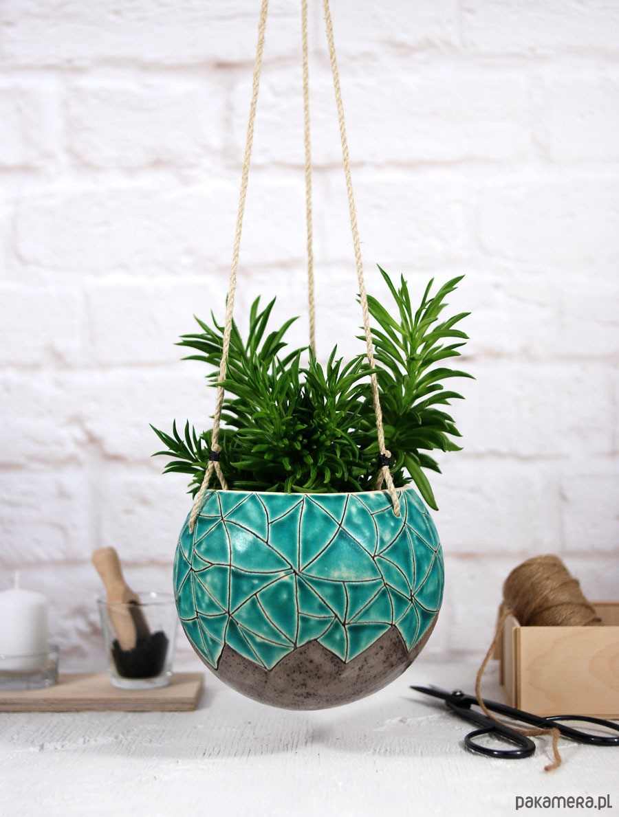 Wisząca doniczka idealnie sprawdzi się w domu urządzonym w stylu boho. Świetnie sprawdzi się jako doniczka do małych roślin, kaktusów czy sukulentów. Dodaj do niej ulubioną roślinę a otrzymasz swoją małą, miejską dżunglę :)