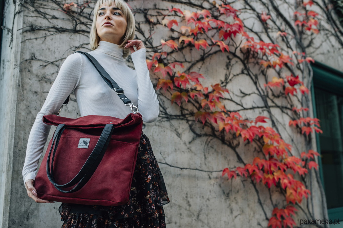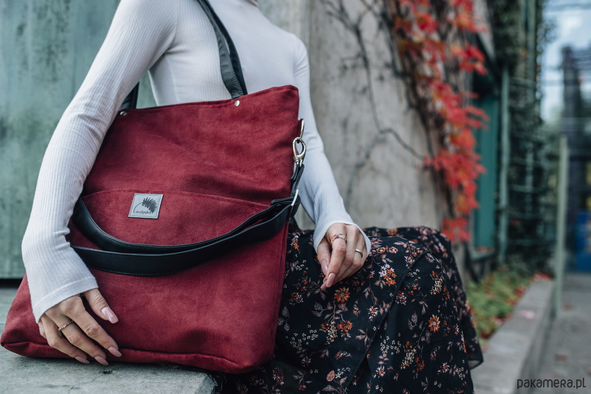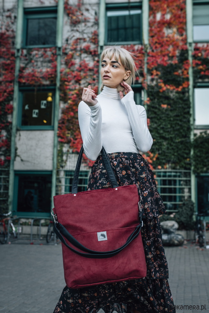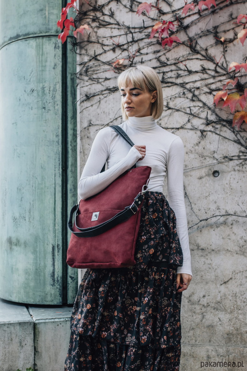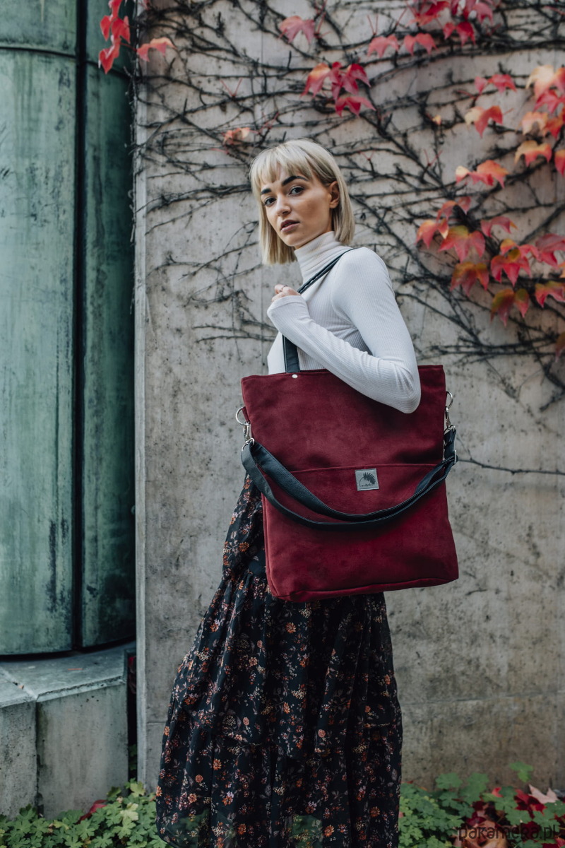 Duża wodoodporna torba z nubuku bordo