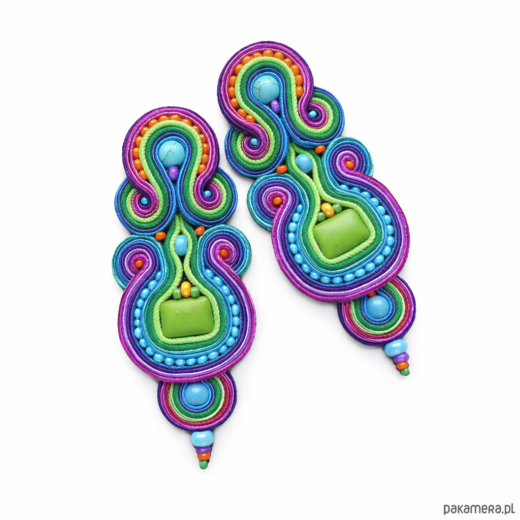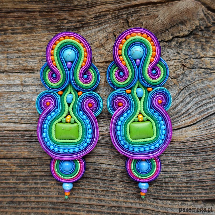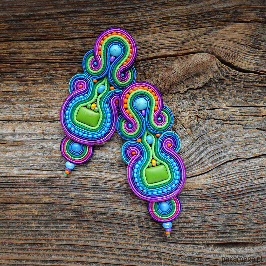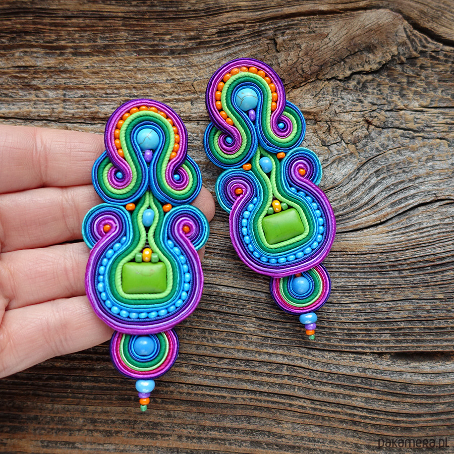 Duże, kolorowe i absolutnie hipnotyzujące kolczyki w technice soutache.