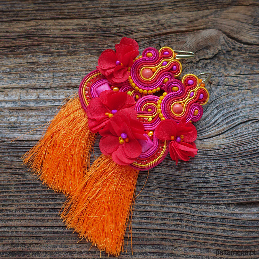 Duże i kolorowe kolczyki sutasz z chwostami