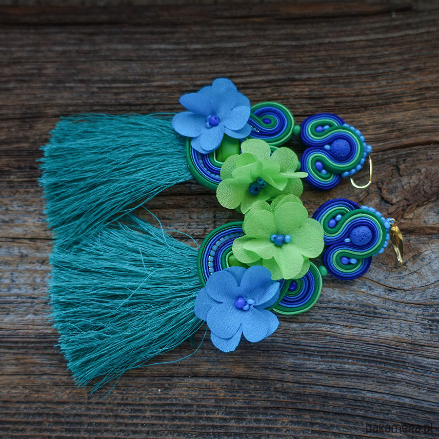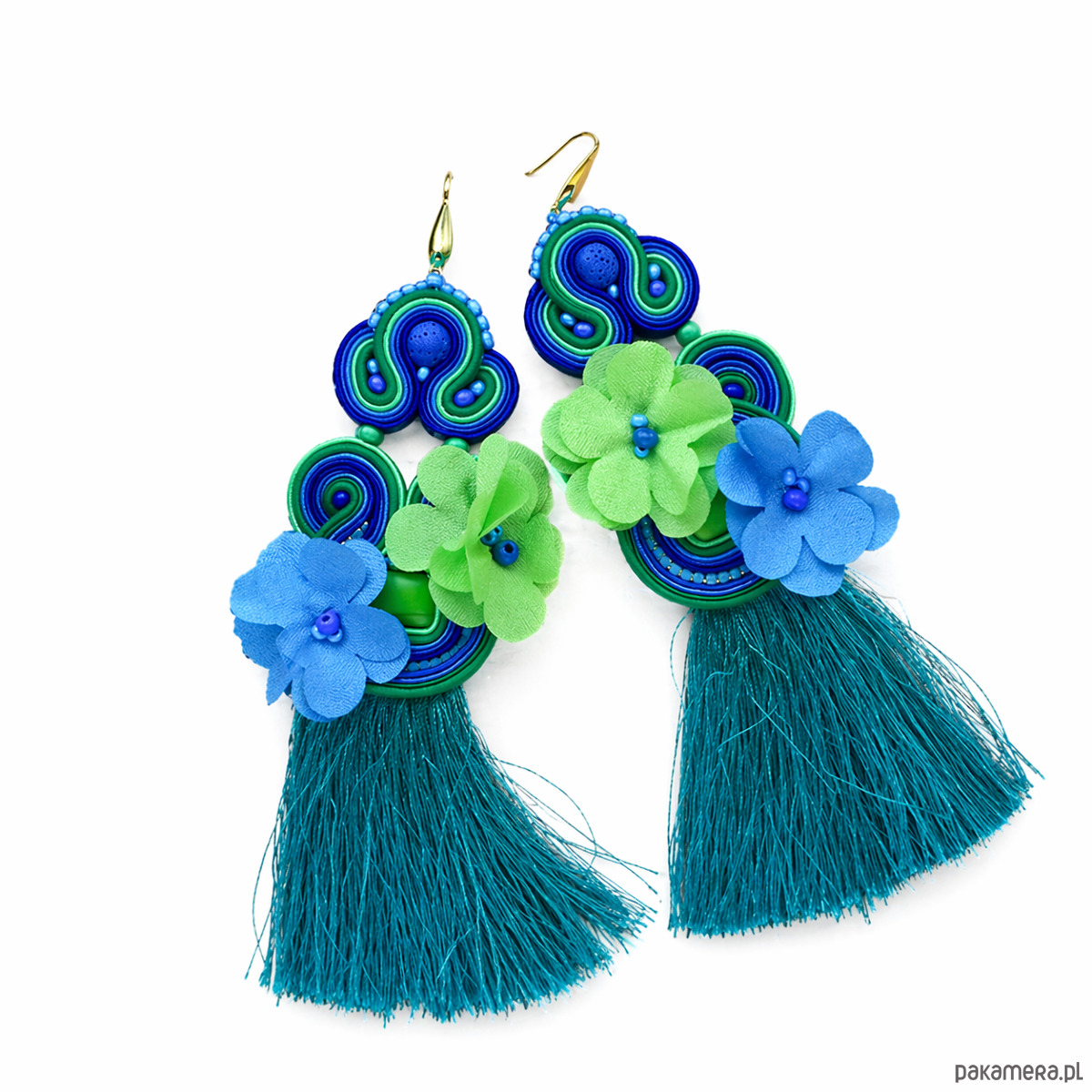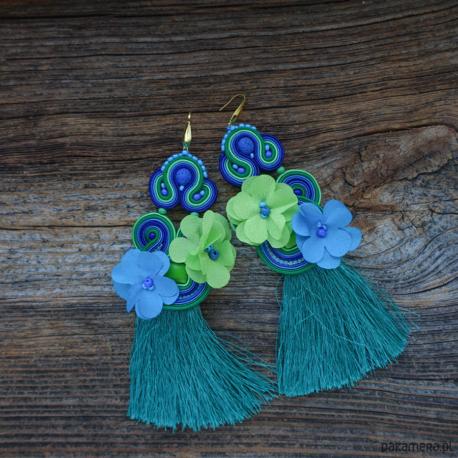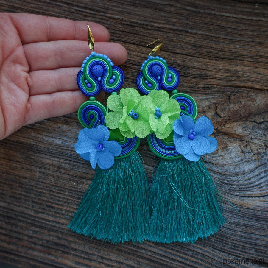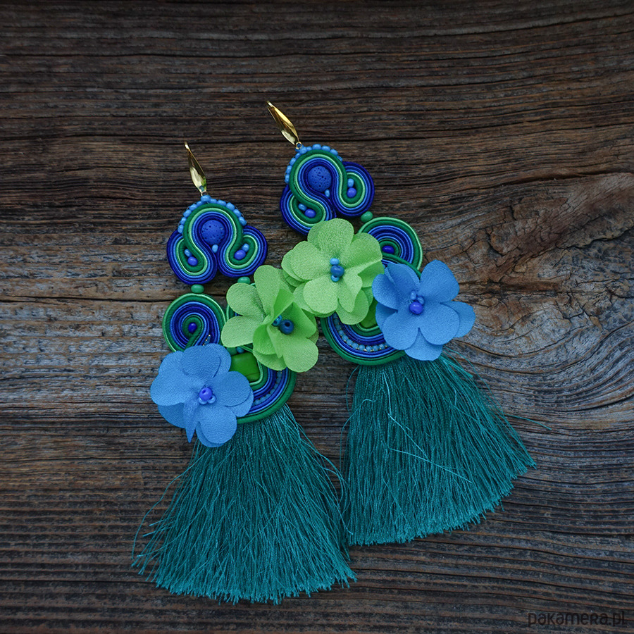 Duże, wyraziste i pełne letniej świeżości kolczyki wykonane w technice soutache.
