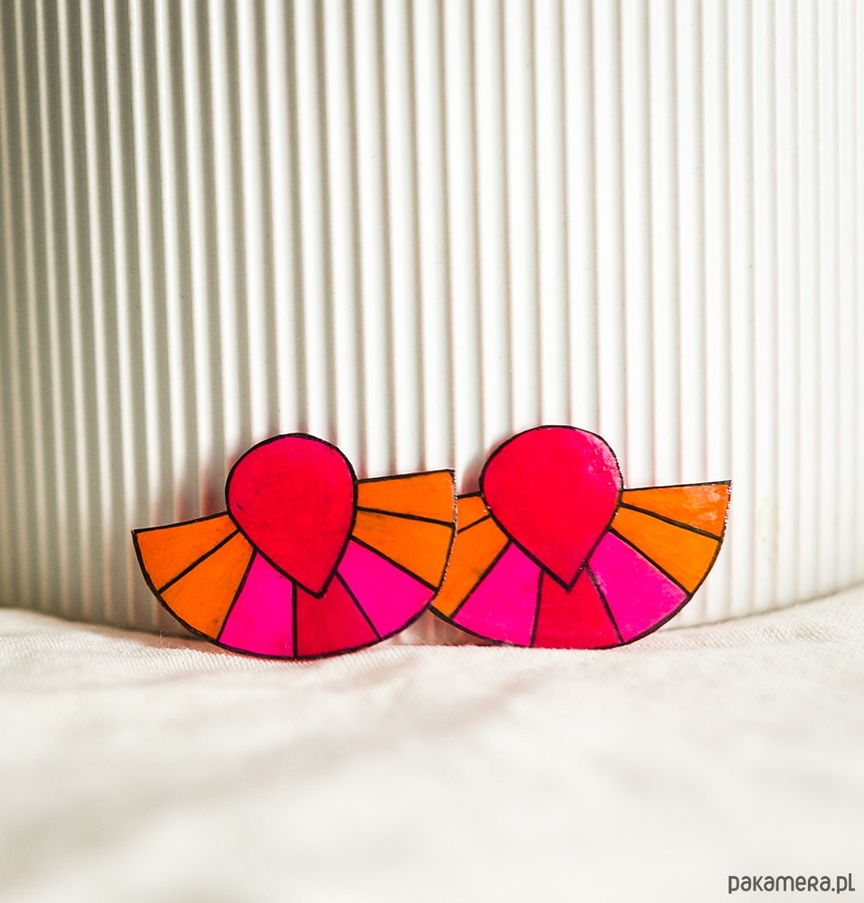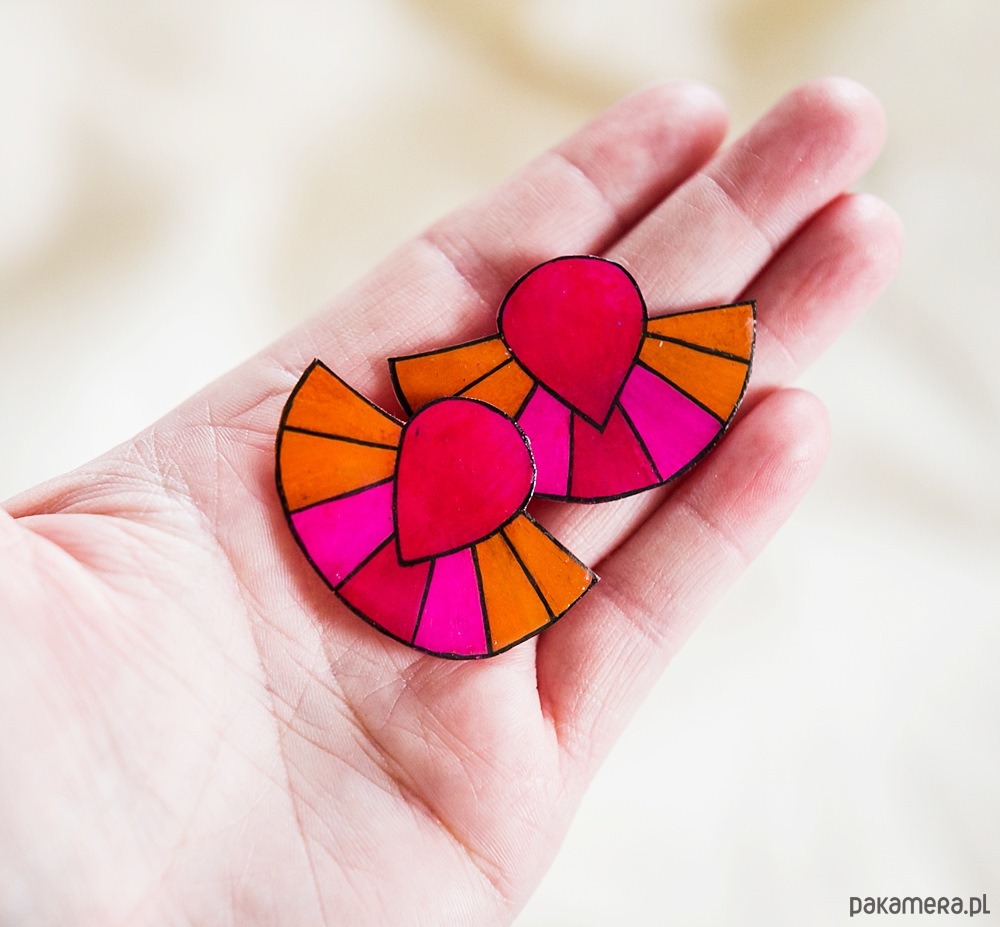 Piękne klipsy, ręcznie rysowane na termokurczliwej folii, zabezpieczone lakierem ekologicznym.