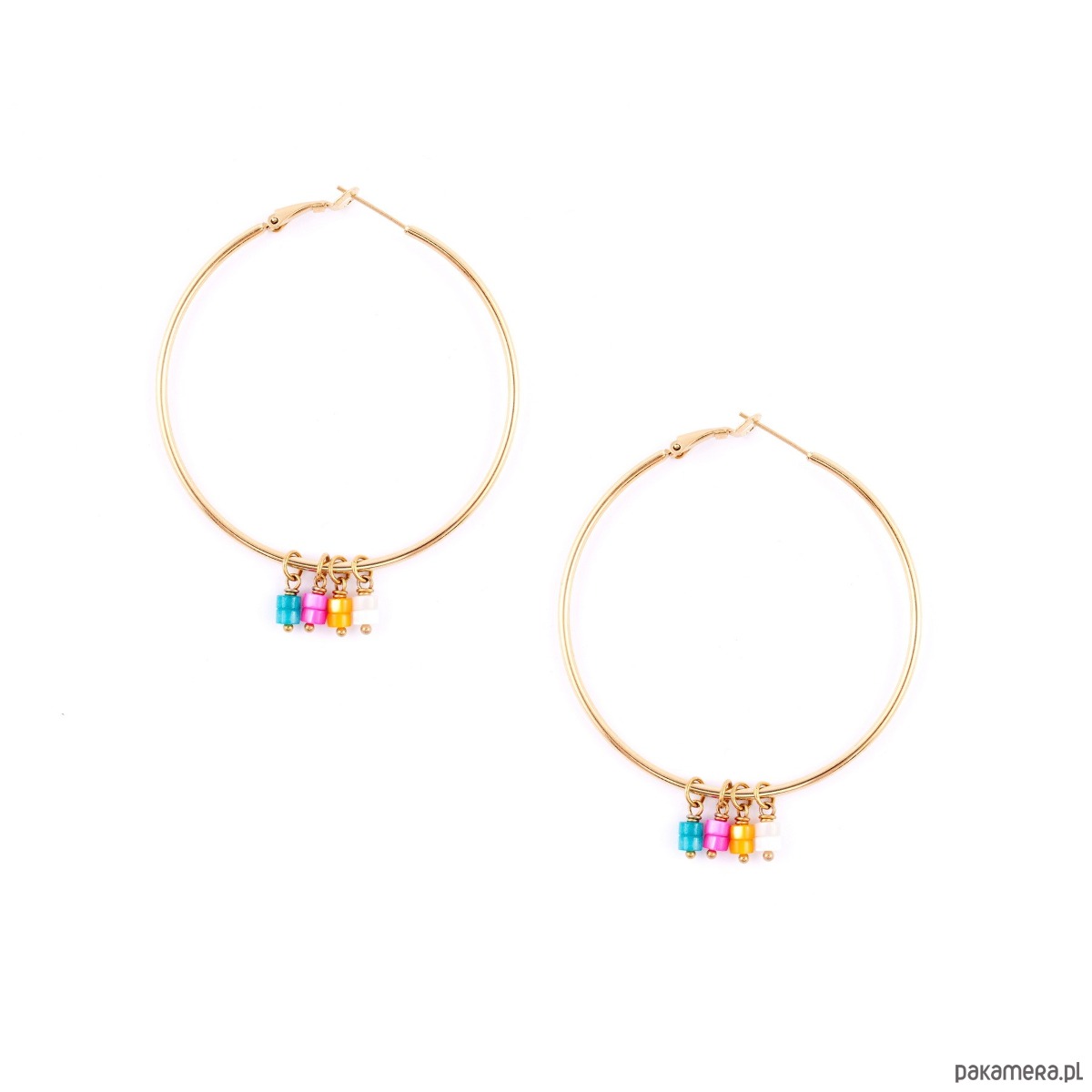 Poznaj nasze egzotyczne kolczyki. Pozłacane kolczyki koła z połączeniu z masą perłową w wakacyjnych odcieniach.