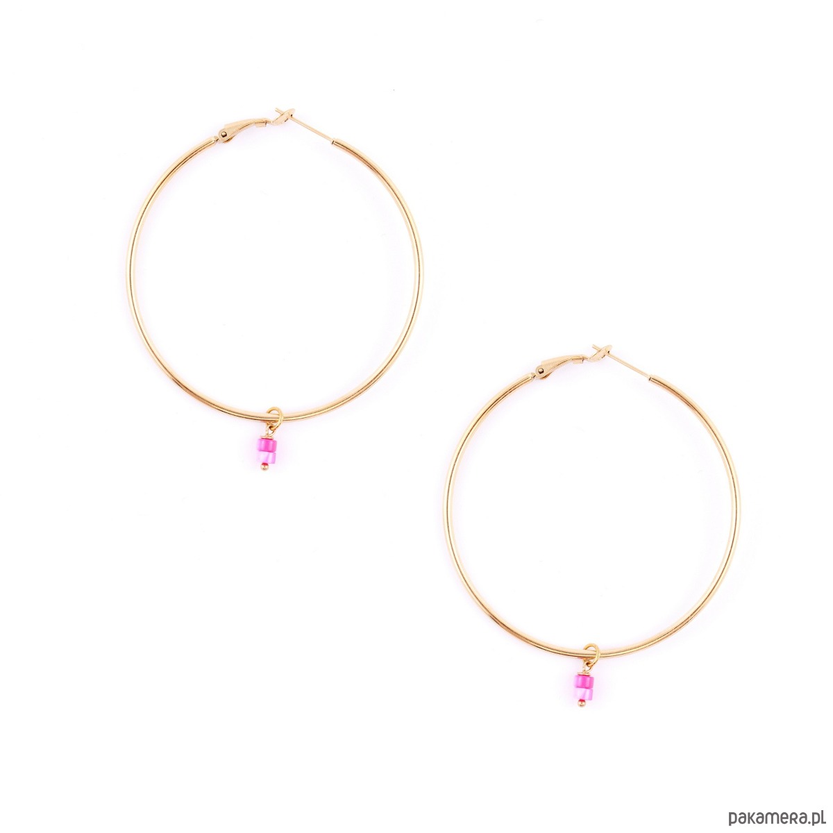 Poznaj nasze pozłacane kolczyki duże koła. Jako ozdobę proponuję masę perłową w różowym kolorze.