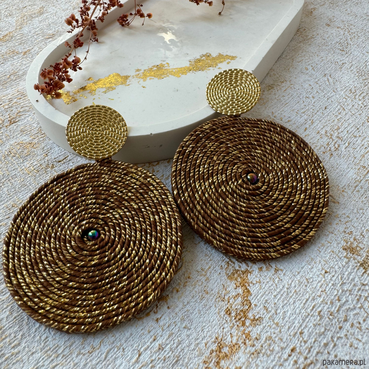 Duże kolczyki koła brązowe ze złotem