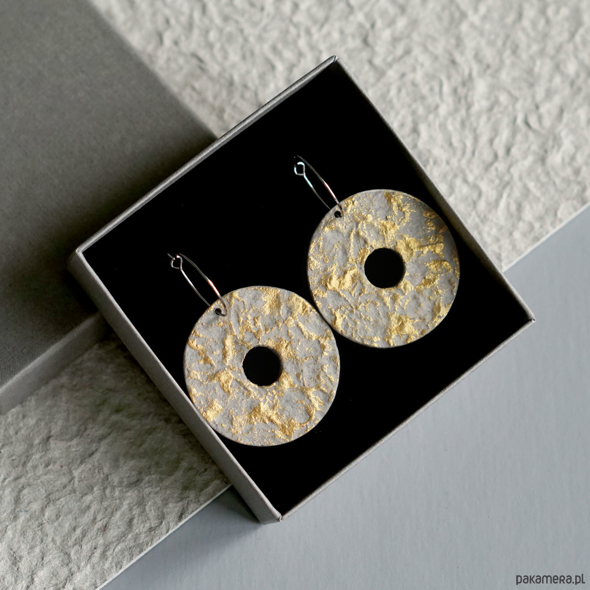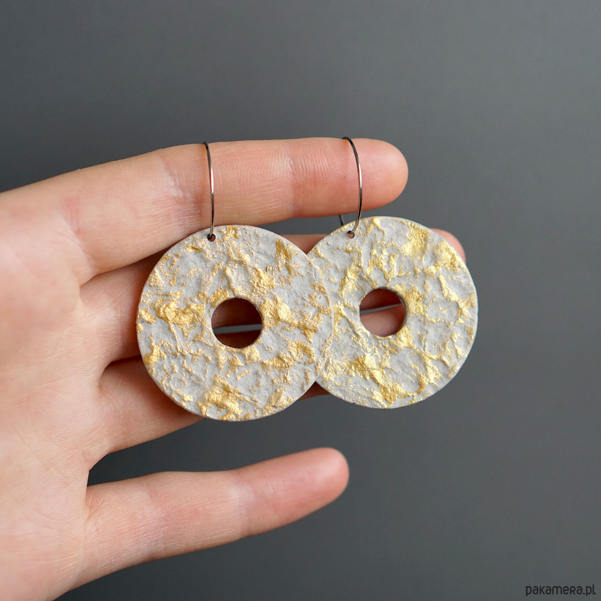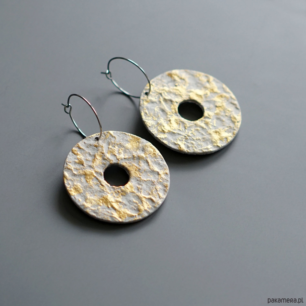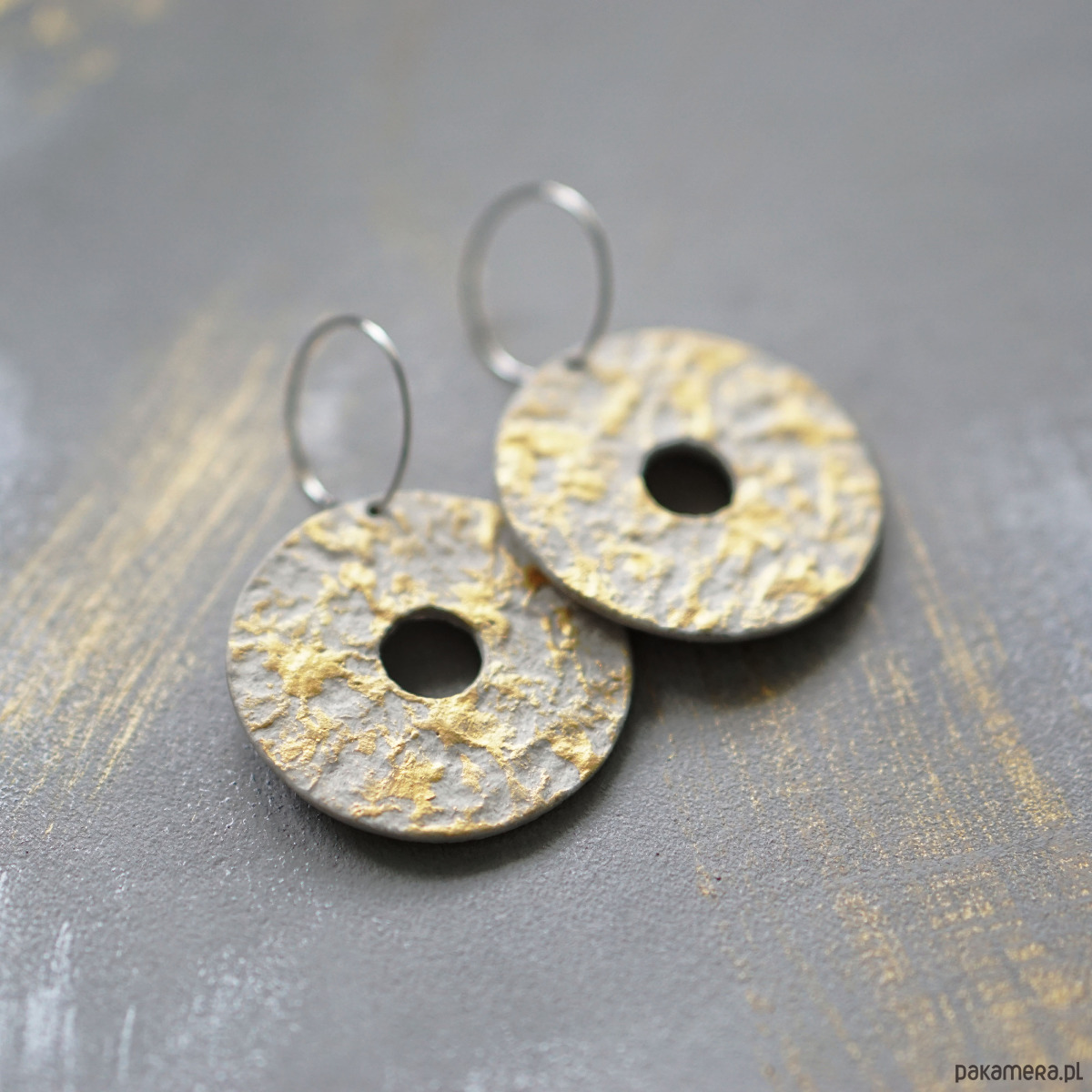 Ozdobne kolczyki koła ze złotym akcentem.