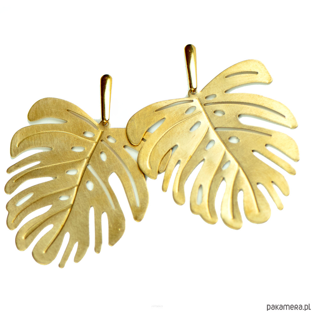 Kolczyki w kształcie liści monstery w odcieniu złota, wykonane z wysokiej jakości mosiądzu wolnego od niklu, ołowiu i kadmu. Wyrazista forma inspirowana naturą sprawia, że to nowoczesny, charakterystyczny dodatek dla kobiet lubiących mocniejsze akcenty w biżuterii. Kolczyki pięknie podkreślają styl i dodają charakteru zarówno codziennym, jak i bardziej eleganckim zestawom.