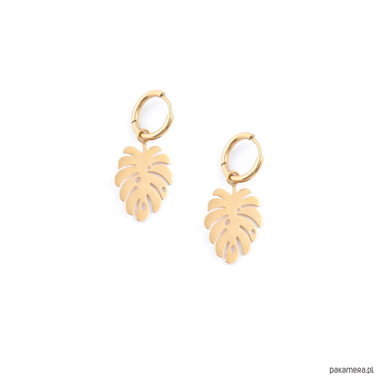 Duże liście monstery - kolczyki koła ze stali szlachetnej pozłacanej