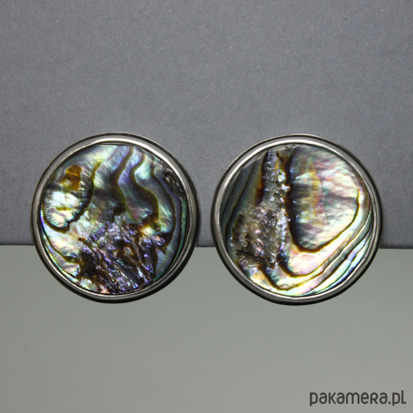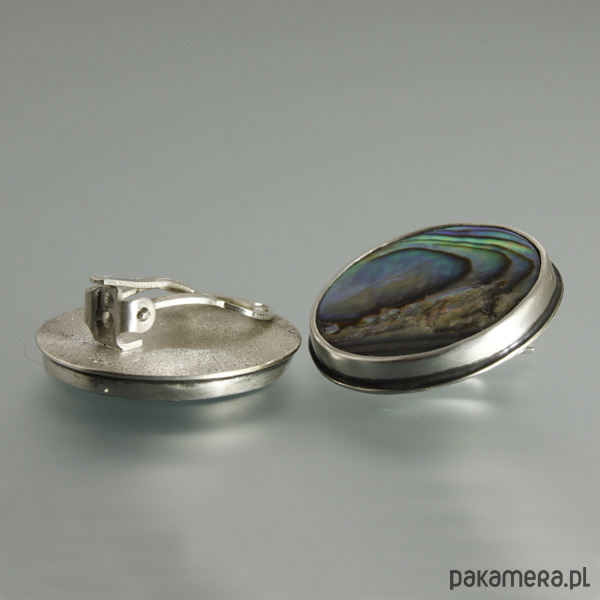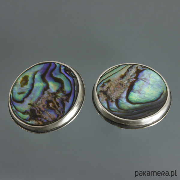 Ręcznie wykonane srebrne klipsy z muszlą. Srebro próby 925 - próba wybita na harfie. Średnica klipsów razem ze srebrnym elementem dookoła: 2,5 cm; średnica muszli: 2,4 cm. Waga klipsów: 12,4 g