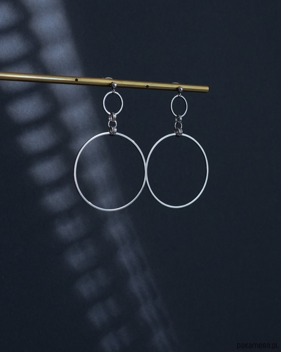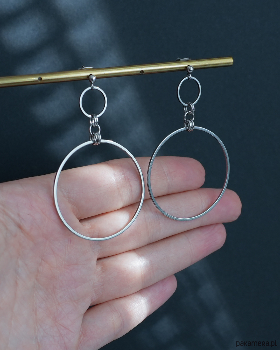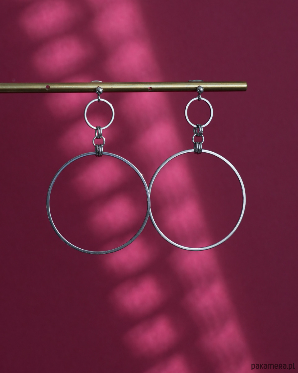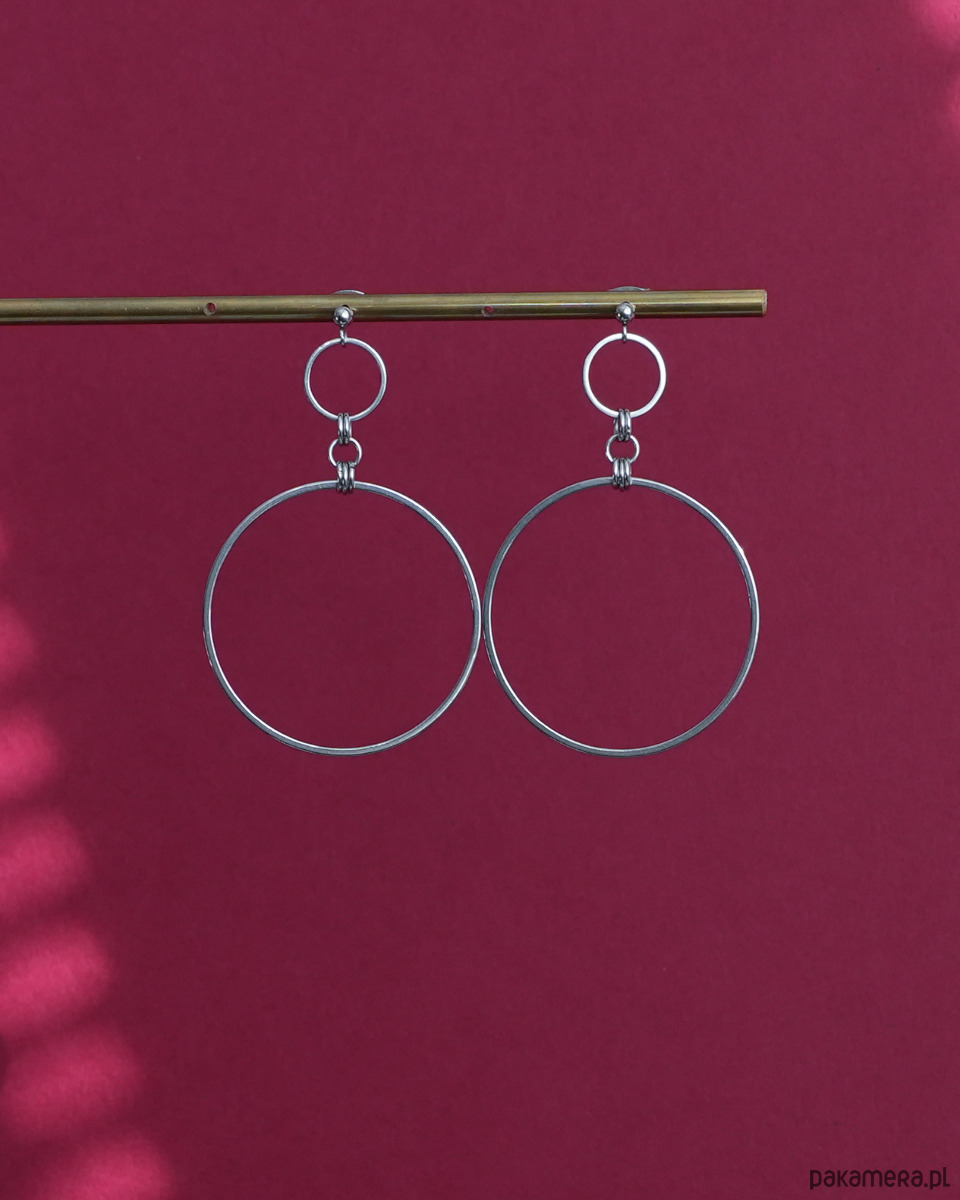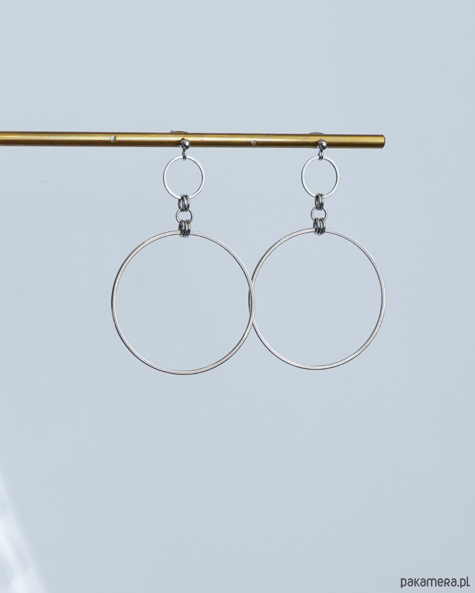 Duże i nowoczesne kolczyki geometryczne z 2 kołami, w całości wykonane ze STALI SZLACHETNEJ.