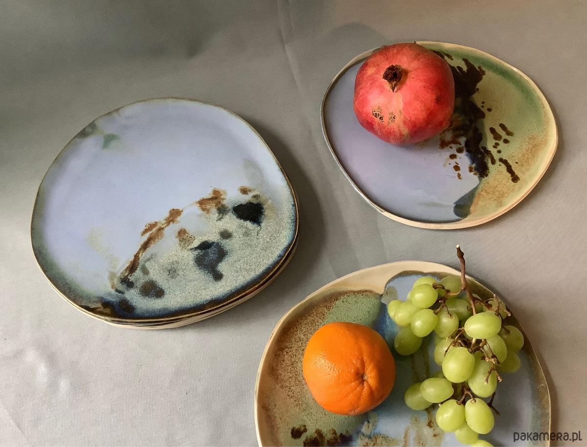 Zapraszam do kupna jednego, dwóch lub kilku talerzy ręcznie robionych z jasnej gliny. Talerze są o nieregularnym kształcie. Każdy wyjątkowy i jedyny w swoim rodzaju, chociaż szkliwione tymi samymi szkliwami: jasny błękit, zieleń pastelowa, beż, lekko nakrapiane ciemnym kolorem.Niby obiadowe, ale świetnie sprawdzą się także, jako śniadaniowe - dla tych, którzy lubią mieć dużo miejsca na duże śniadanie:)