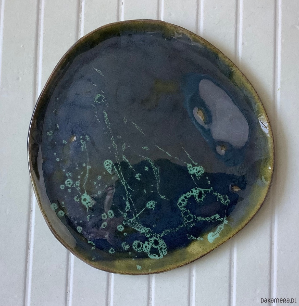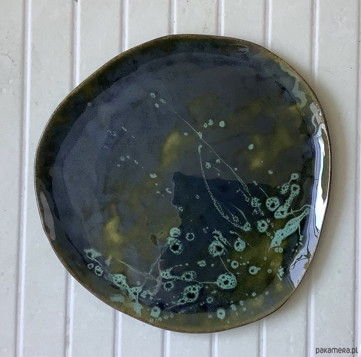 Zapraszam do kupna talerzy ręcznie robionych z szarej gliny. Każdy wyjątkowy i jedyny w swoim rodzaju, chociaż szkliwione tym samym szkliwem - ciemną transparentną zielenią butelkową z jaśniejszymi przebarwieniami i wzory z odrobiną turkusu. Niby obiadowe, ale świetnie sprawdzą się także, jako śniadaniowe - dla tych, którzy lubią mieć dużo miejsca na duże śniadanie:)