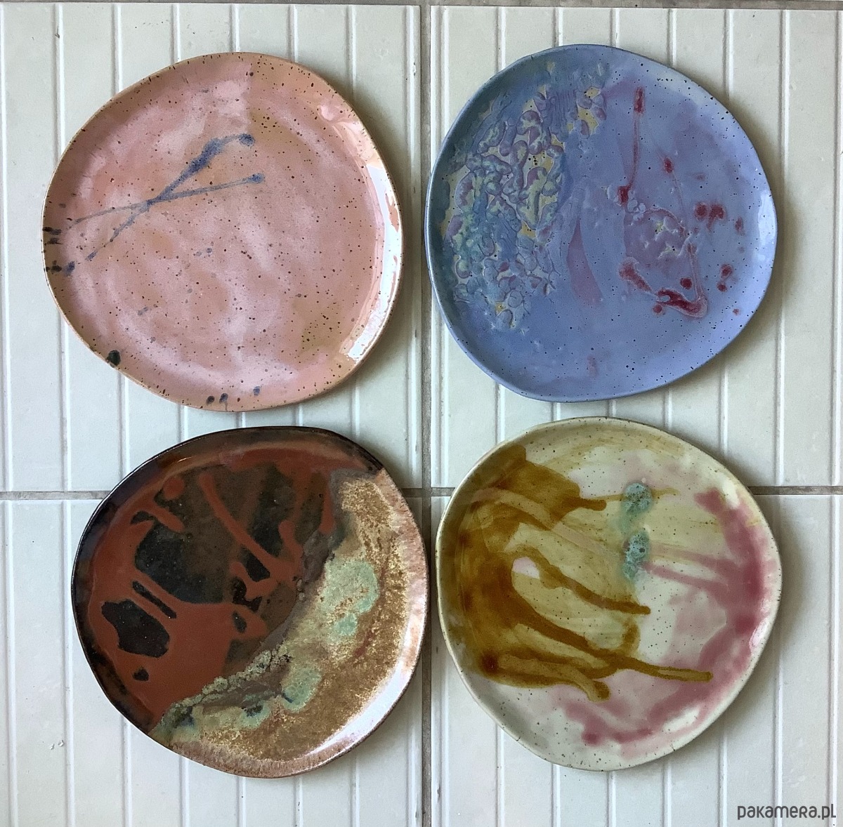 Zapraszam do kupna talerzy ręcznie robionych z jasnej kropkowanej gliny. Każdy wyjątkowy i jedyny w swoim rodzaju, każdy szkliwiony innymi szkliwami. Niby obiadowe, ale świetnie sprawdzą się także, jako śniadaniowe - dla tych, którzy lubią mieć dużo miejsca na duże śniadanie:)