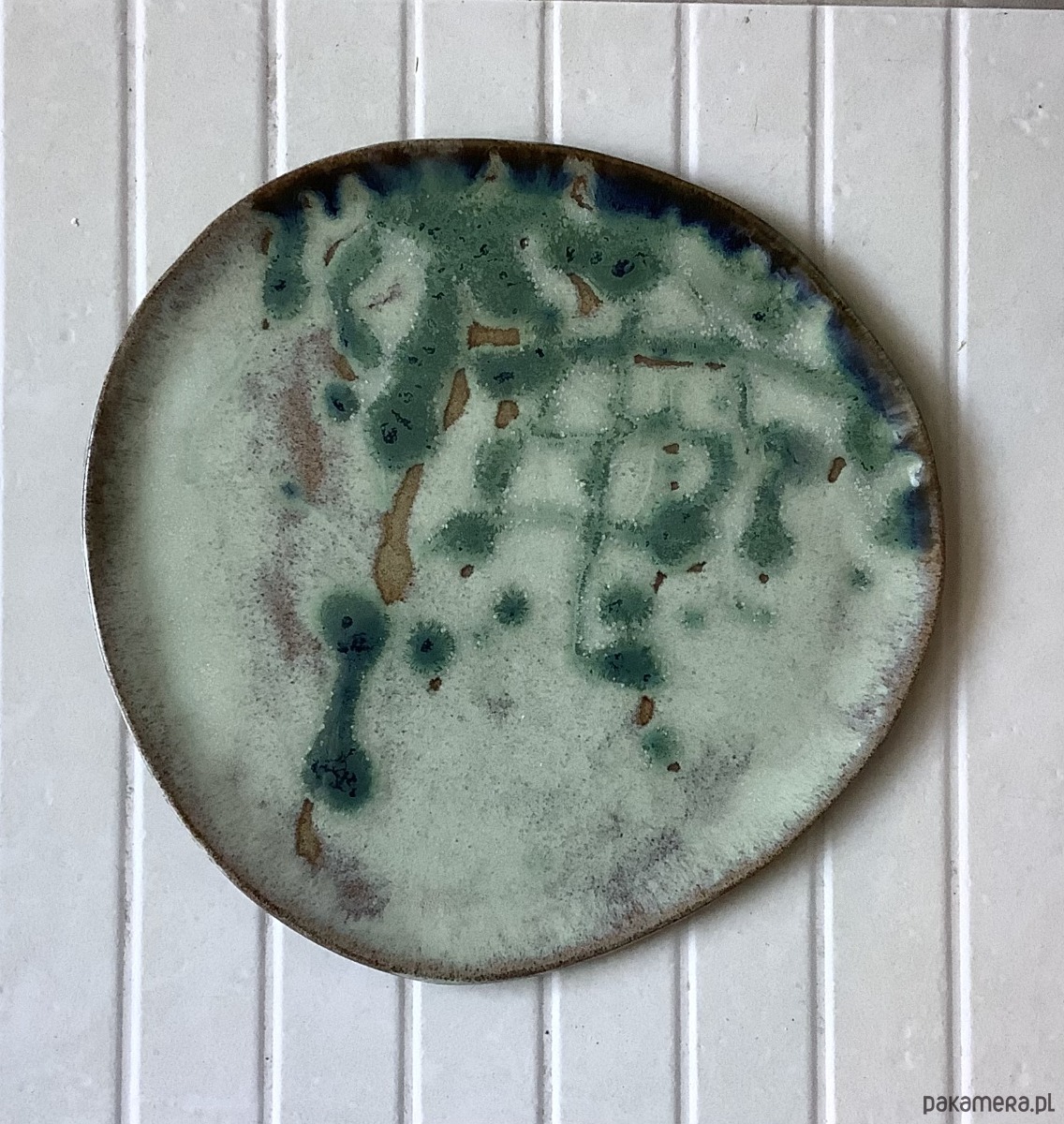 Zapraszam do kupna talerzy ręcznie robionych z szarej gliny. Każdy wyjątkowy i jedyny w swoim rodzaju, chociaż szkliwione tym samym szkliwem - ciemną zielenią butelkową z jaśniejszymi przebarwieniami, mlecznym i miejscami na brzegach granatem. Niby obiadowe, ale świetnie sprawdzą się także, jako śniadaniowe - dla tych, którzy lubią mieć dużo miejsca na duże śniadanie:)
