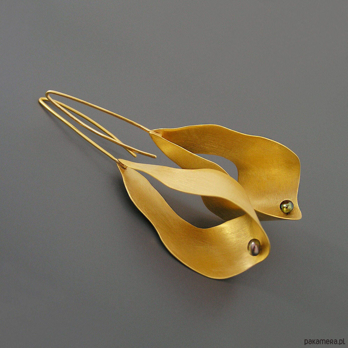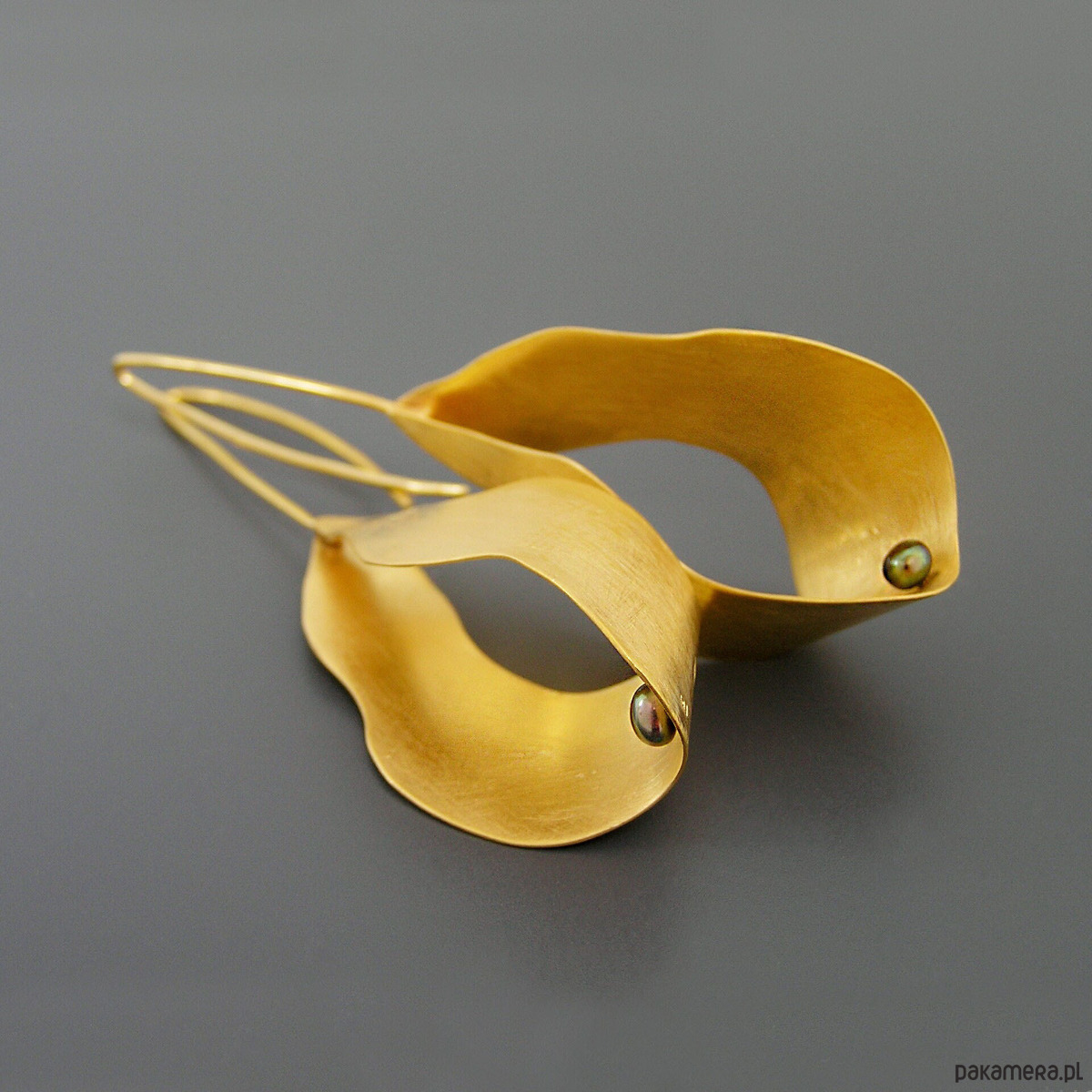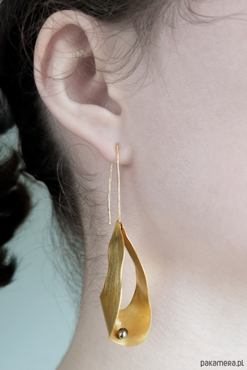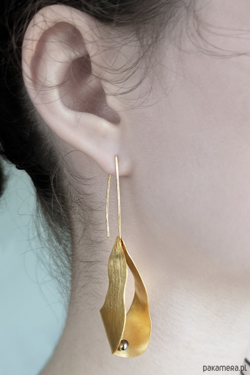 Duże unikatowe kolczyki wykonane z satynowanego srebra, pozłacane warstwą 2 mikronów 24 karatowego złota.