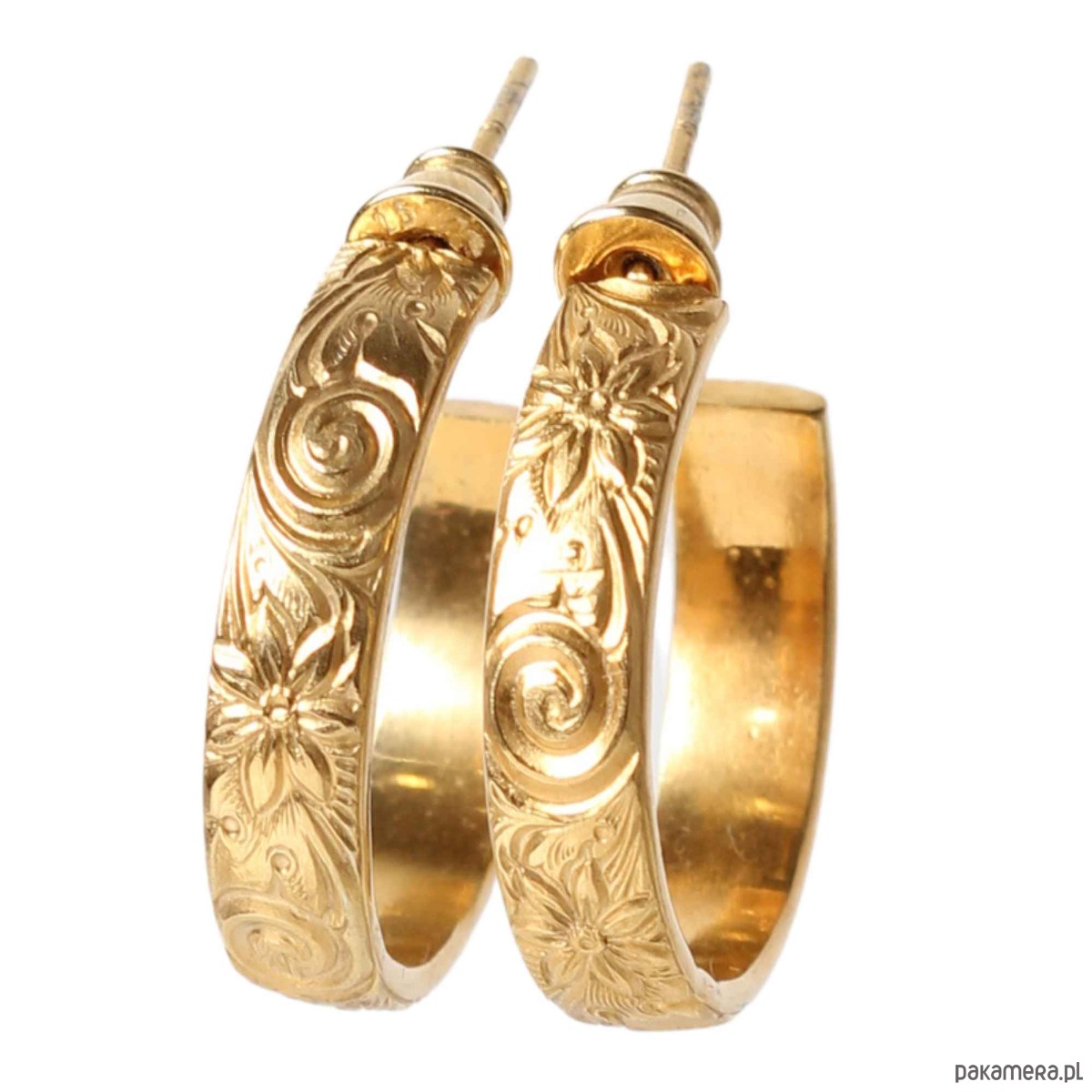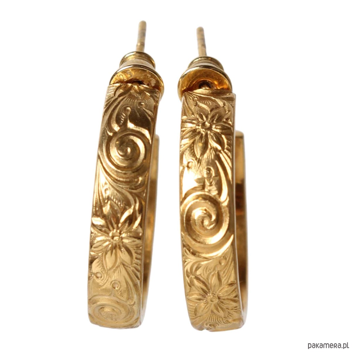 Ręcznie wykonane kolczyki koła ze srebra złoconego 24k złotem z kwiatową fakturą