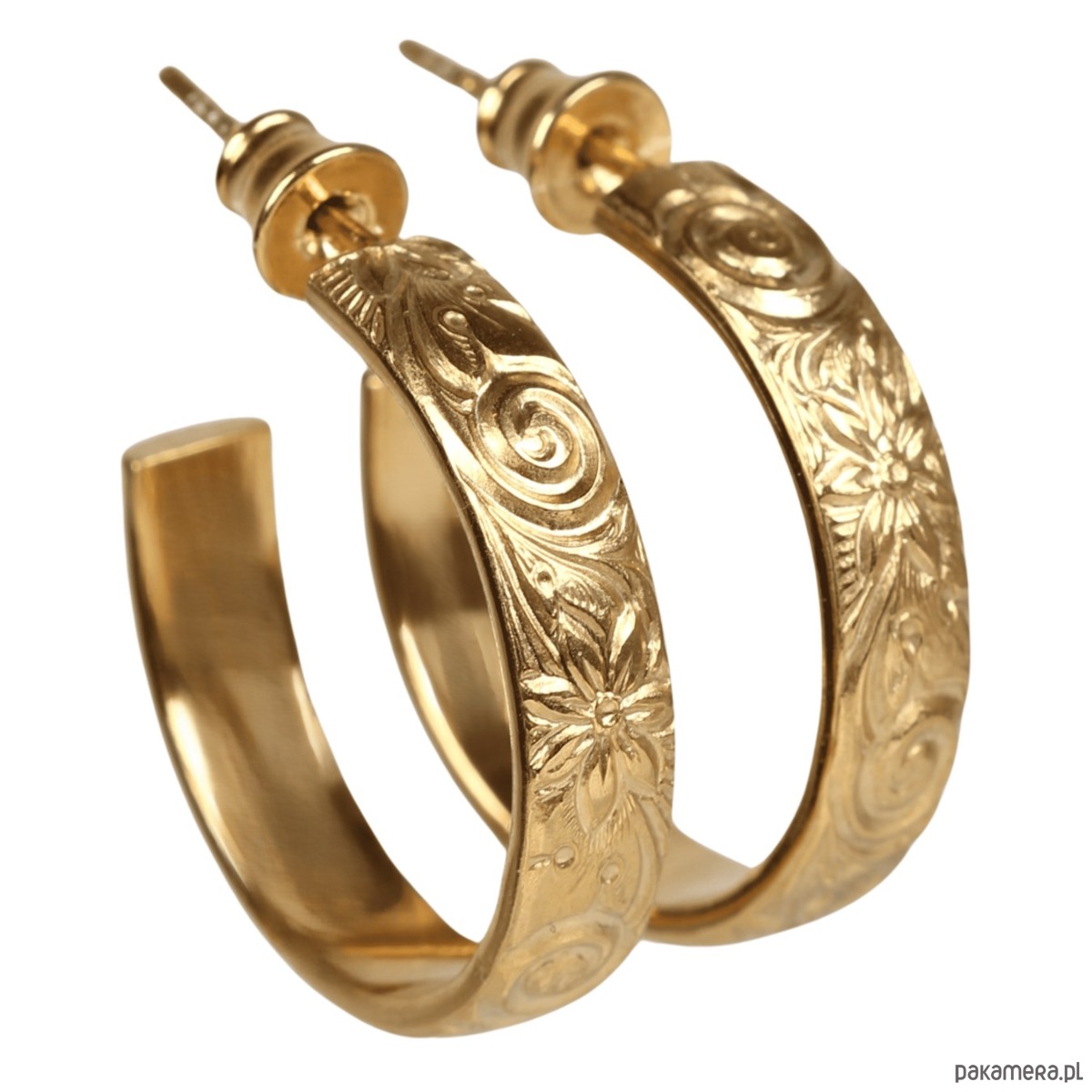 Duże złote kolczyki koła z fakturą kwiatową - Zinnia