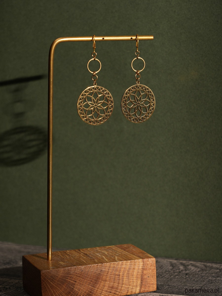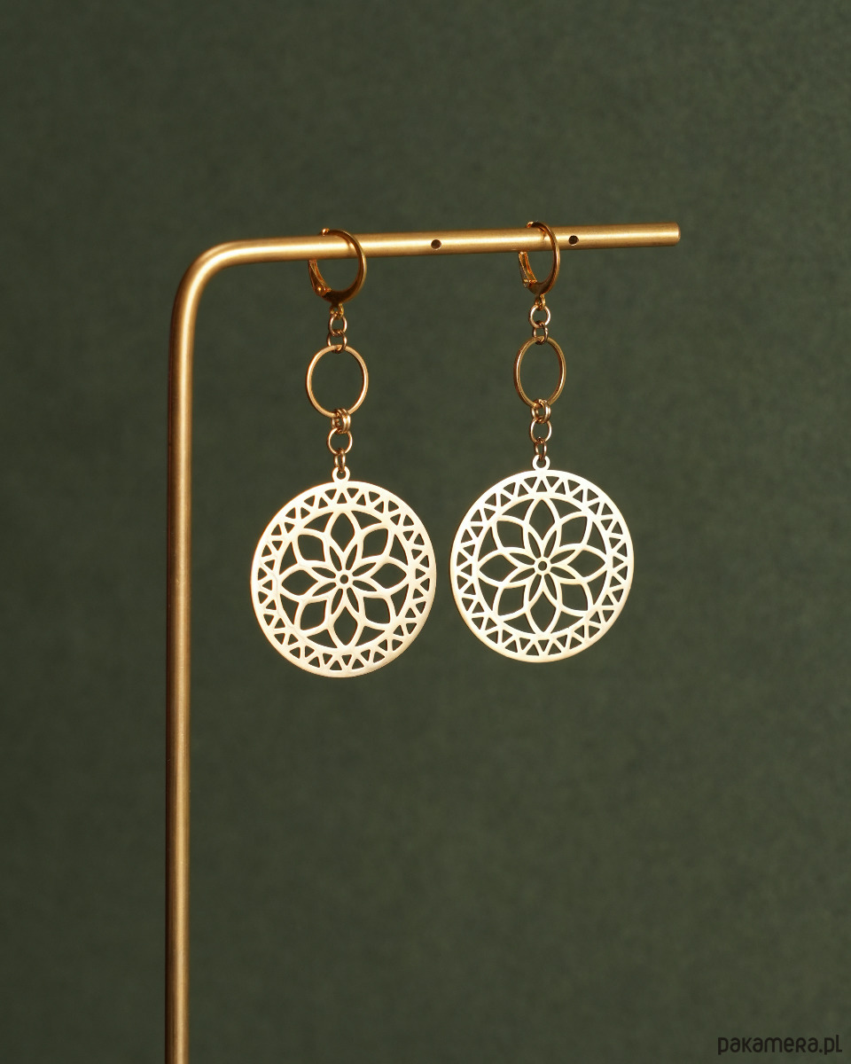 Niezwykle efektowne i ozdobne kolczyki z dużymi rozetami. Kolczyki są w całości wykonane ze stali szlachetnej.