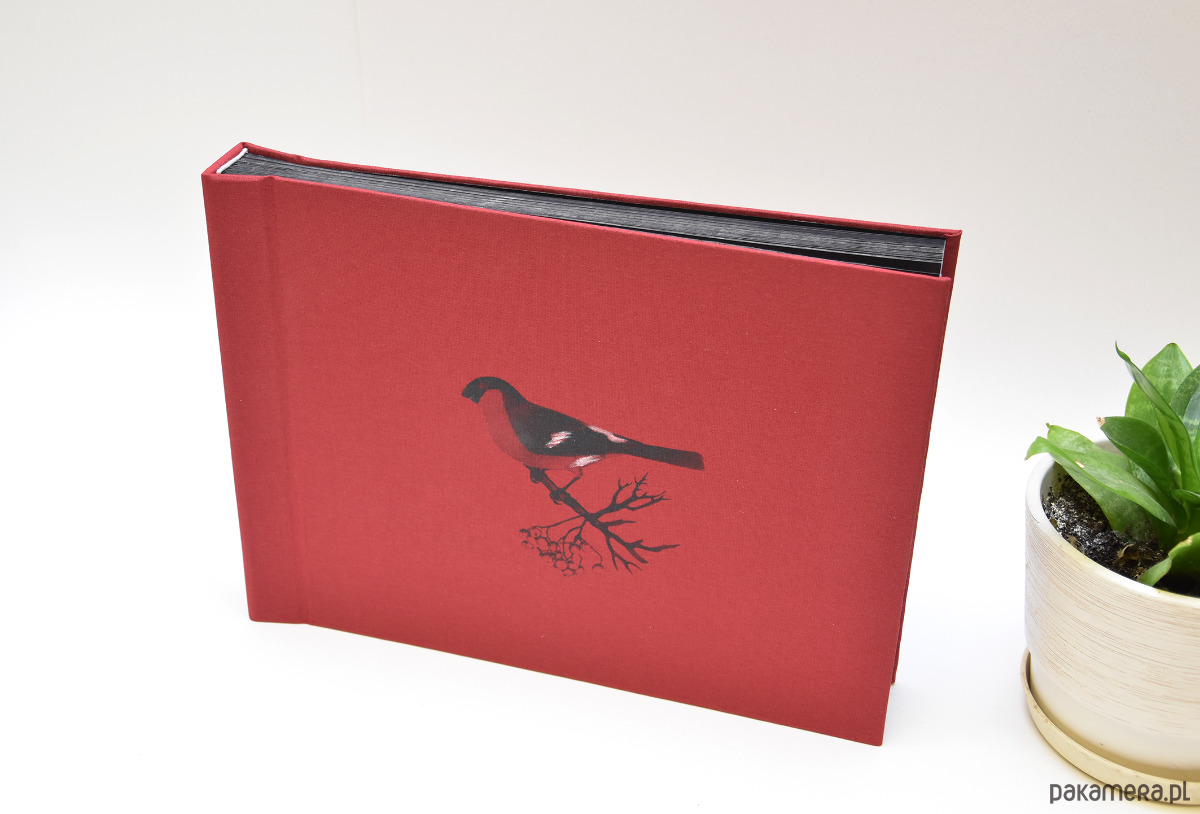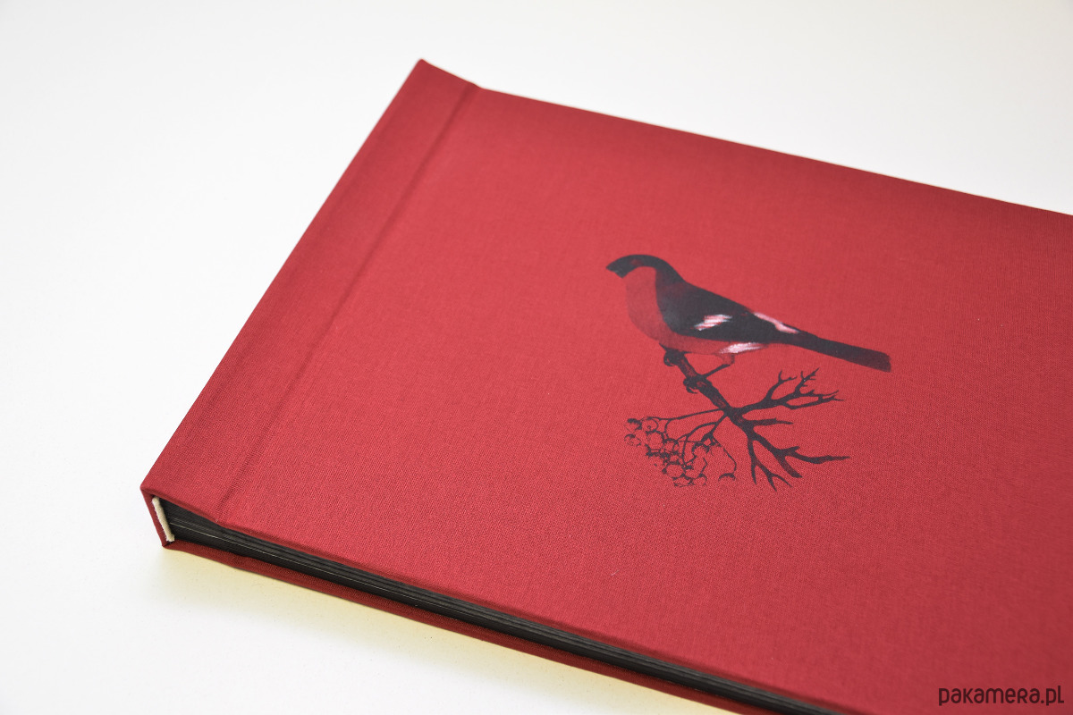 Ręcznie szyty album o wymiarach 33,5 x 26 cm.