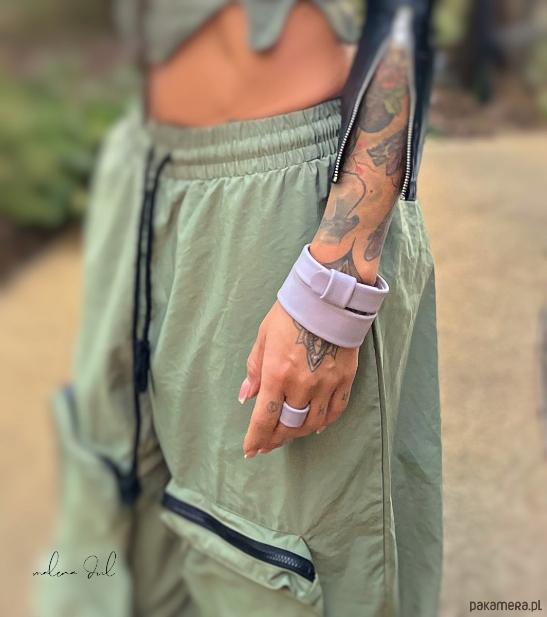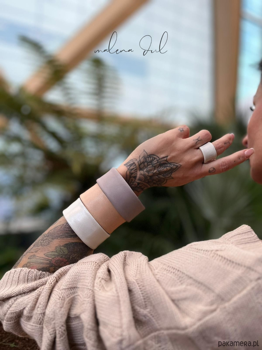 Wyjątkowy, awangardowy pierścionek z fioletowej skóry naturalnej w odcieniu bakłażanowym . Duży rozmiary i oryginalny design, niebanalny dodatek do codziennej czy wieczorowej stylizacji. Pierścionek wykonuje zgodnie z zamówionym rozmiarem (obwód palca). Szyty beżową nicią kaletniczą.
