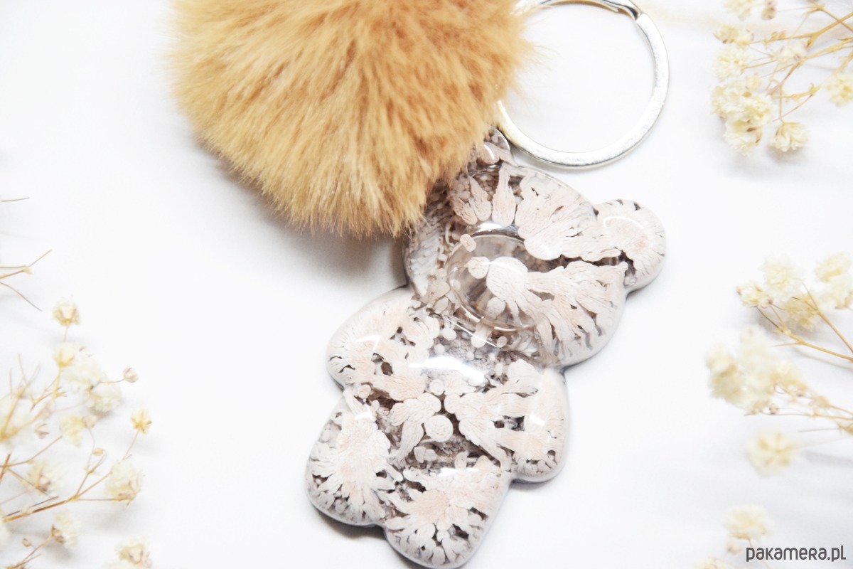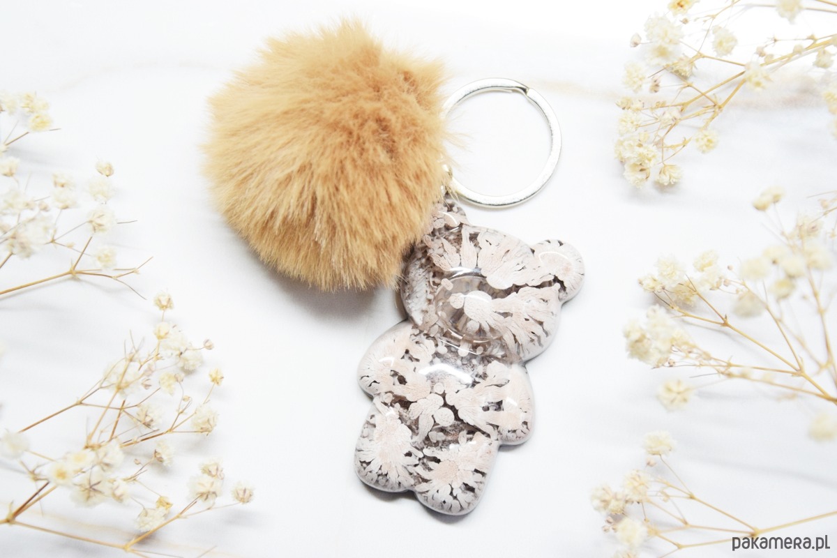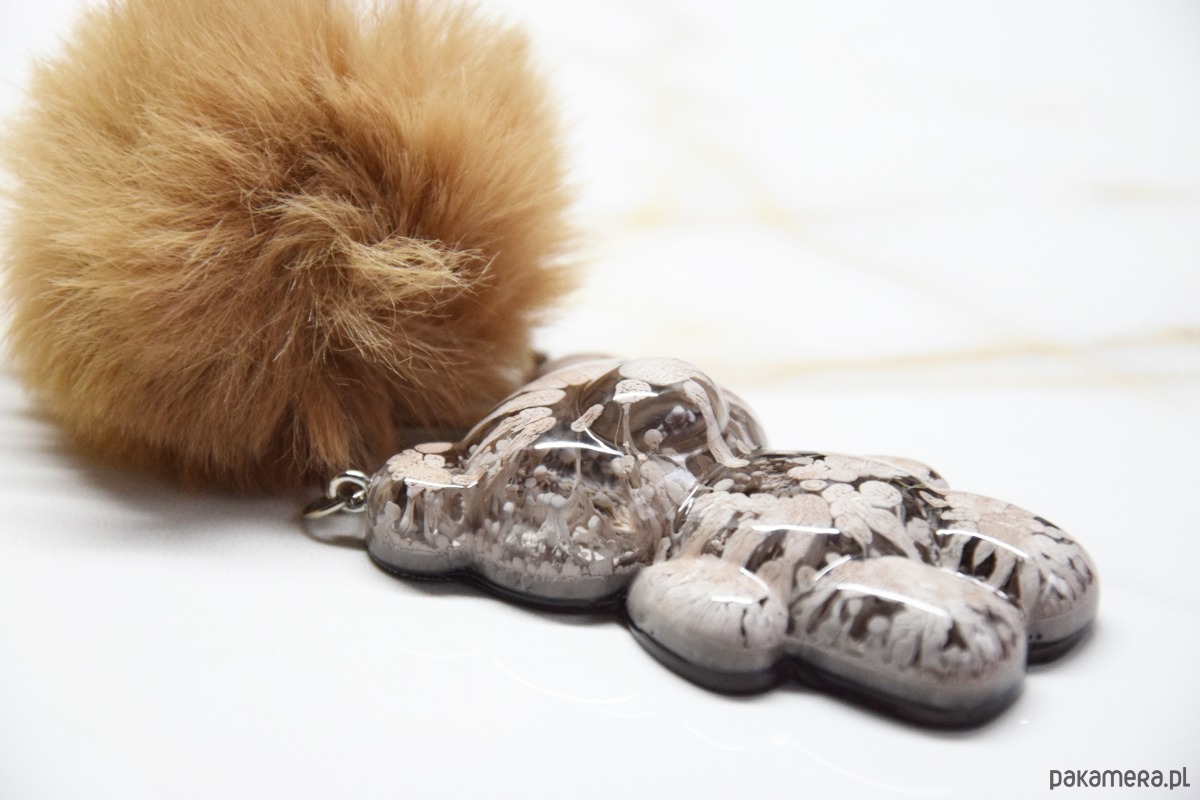 Brelok Miś w wydaniu XXL. Duży, solidny brelok wykonany z żywicy epoksydowej, zawieszony na mocnym kółku, do którego doczepiony jest duży puszysty pompon, dobrany kolorystycznie do miśka. Misie odlewane sa w pojedynczych egzemplarzach, dzięki czemu do Twoich dłoni trafi prawdziwy unikat, którego nie będzie posiadał nikt inny na całym świecie - świetna alternatywa dla produktów masowej produkcji! Idealny do plecaka, torebki, kluczy i wielu innych...