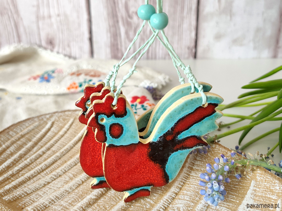 Duży ceramiczny kogucik zawieszka Wielkanocna