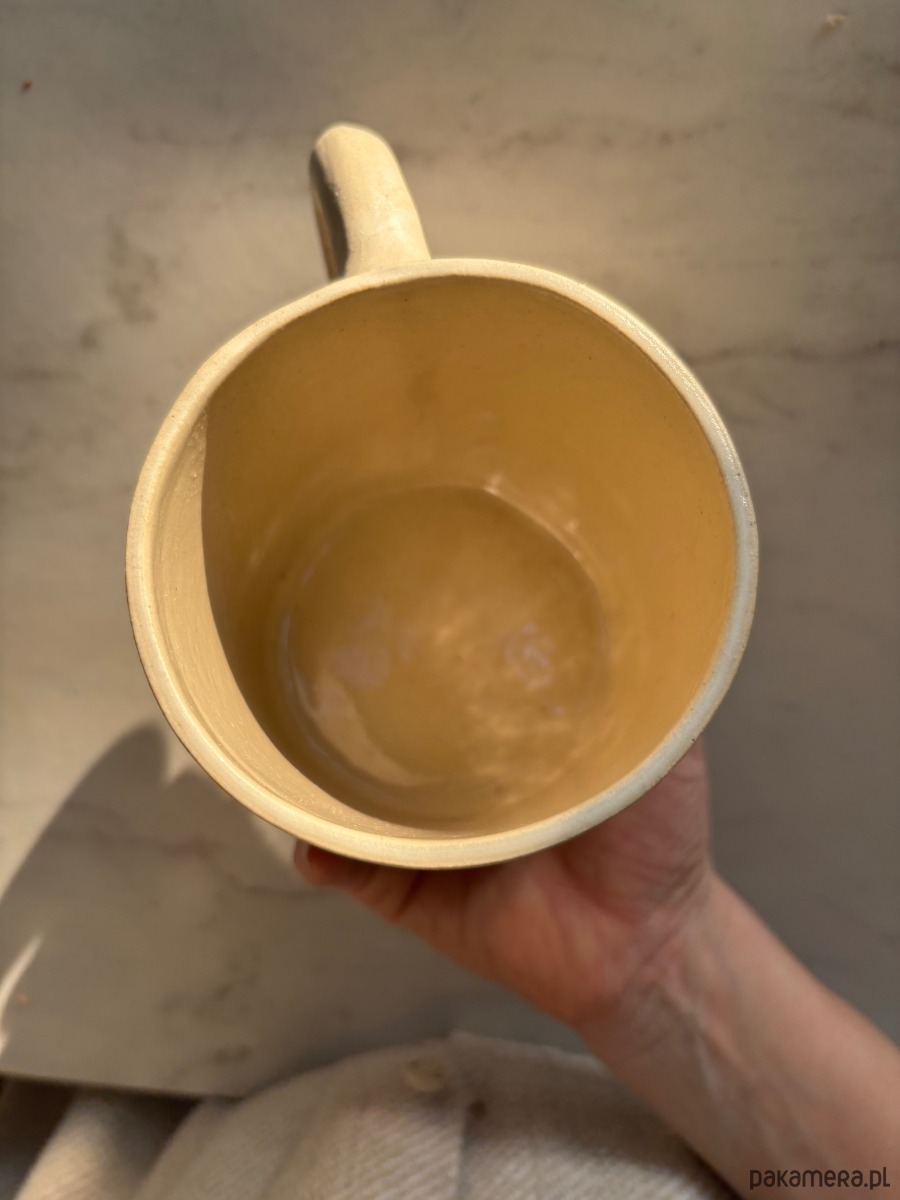 Każdy z nich jest celowo lepiony bez użycia form, w związku z czym kształt jest nieidealny. Nie jest to idealny cylinder oraz idealne ucho i o to w tym wszystkim chodzi. Delikatnie organiczny kształt w stylu modern farmhouse w połączeniu z minimalistycznym szkliwieniem nadaje przedmiotowi harmonii i kojącego, a jednocześnie radosnego charakteru.