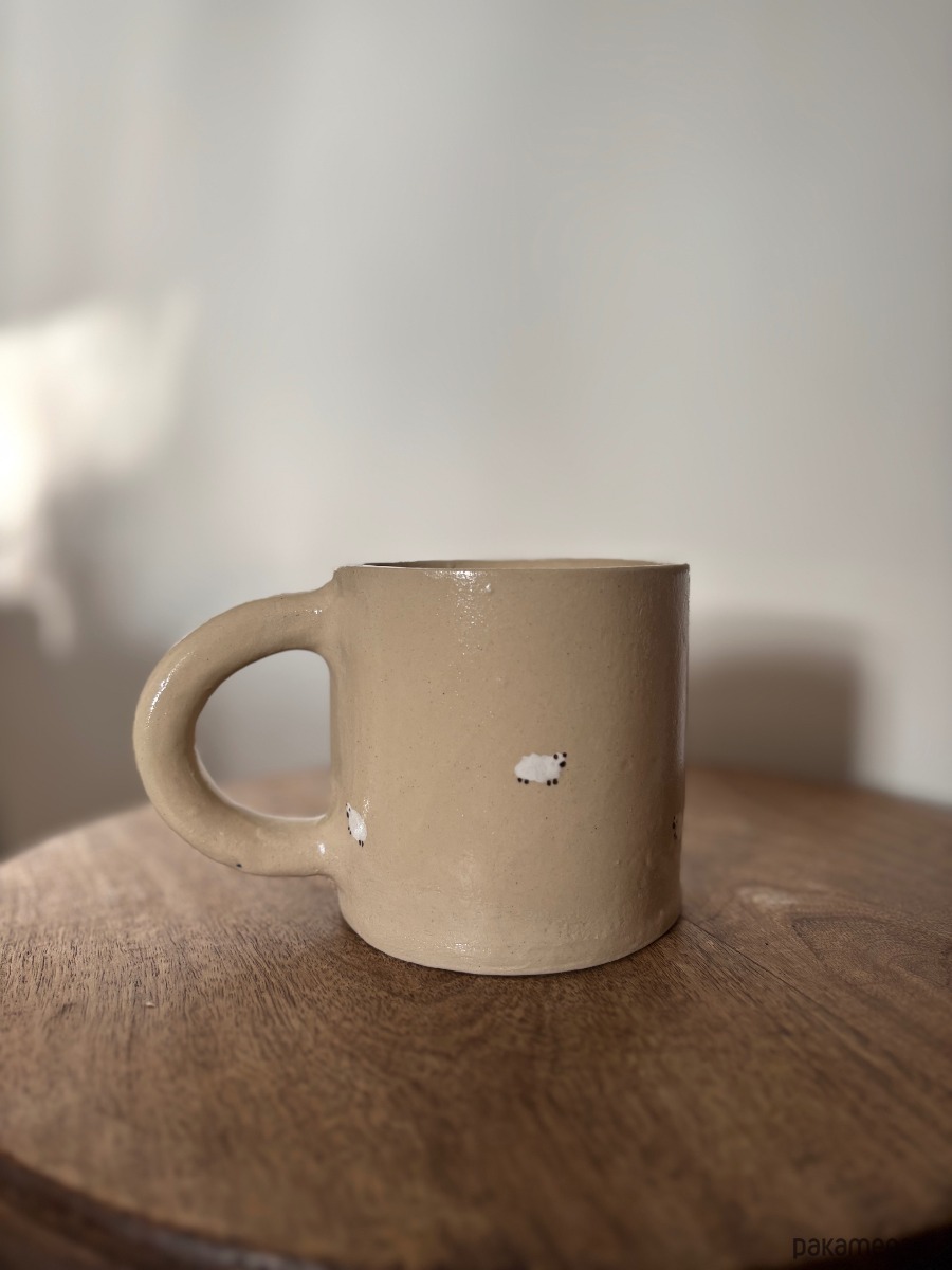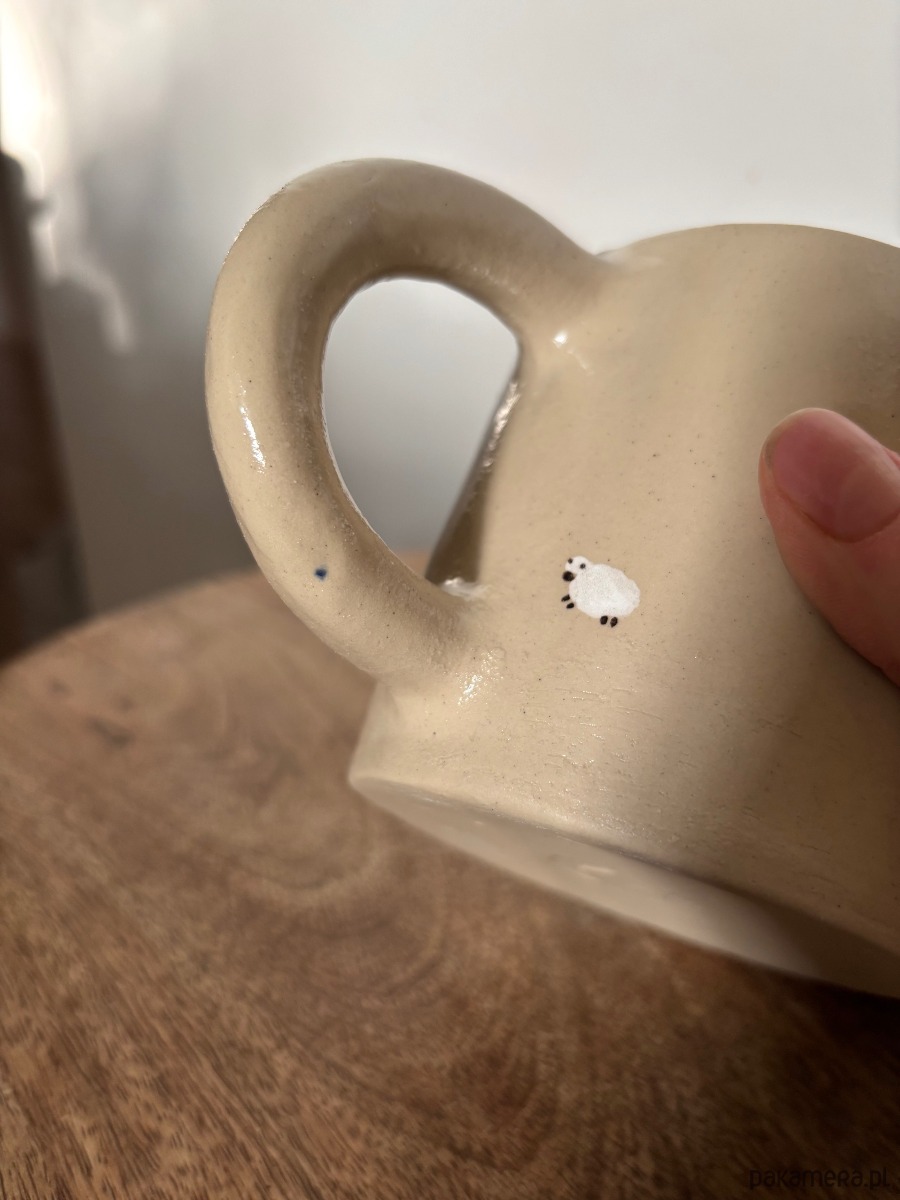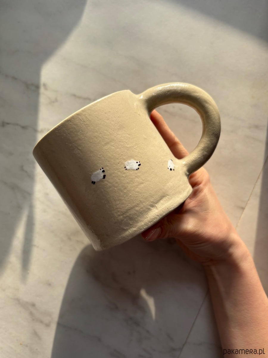 Duży Ceramiczny Kubek Handmade 450 ml z Owieczkami