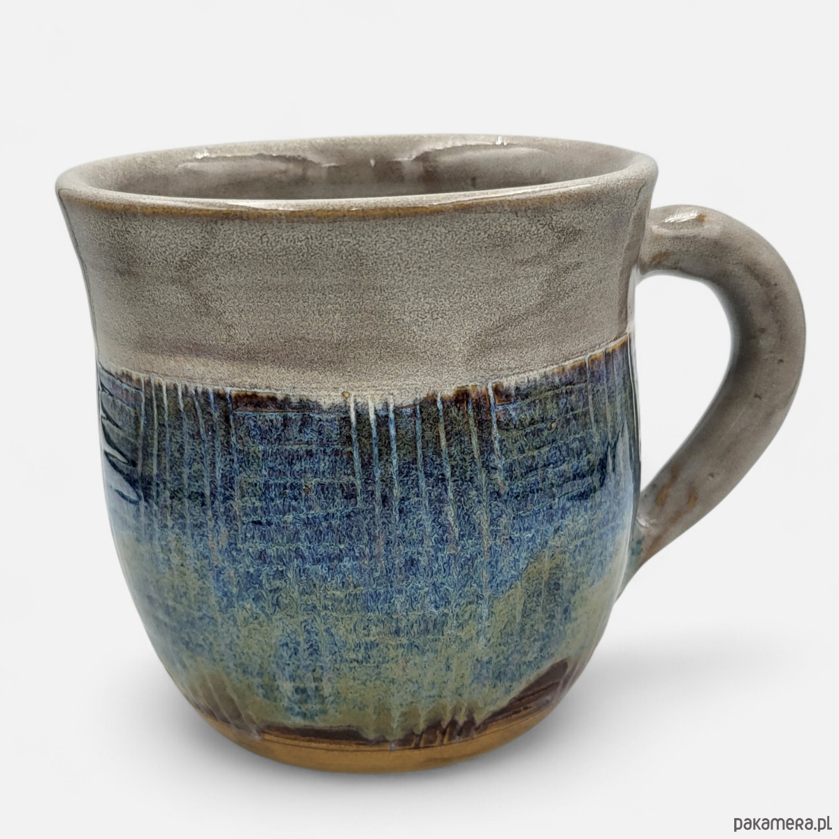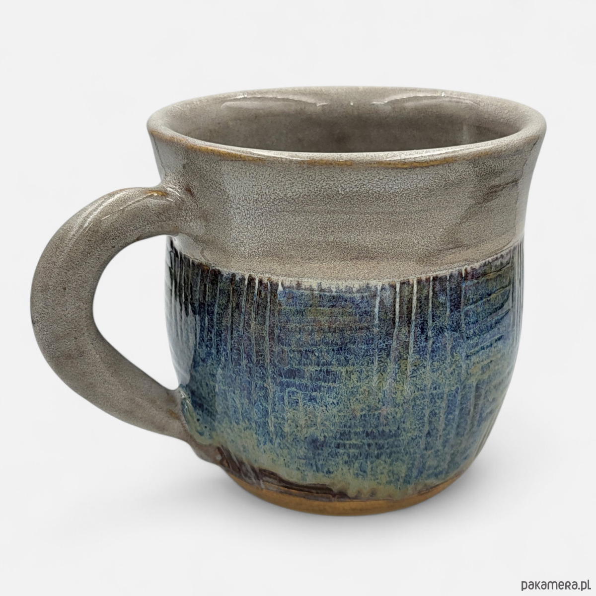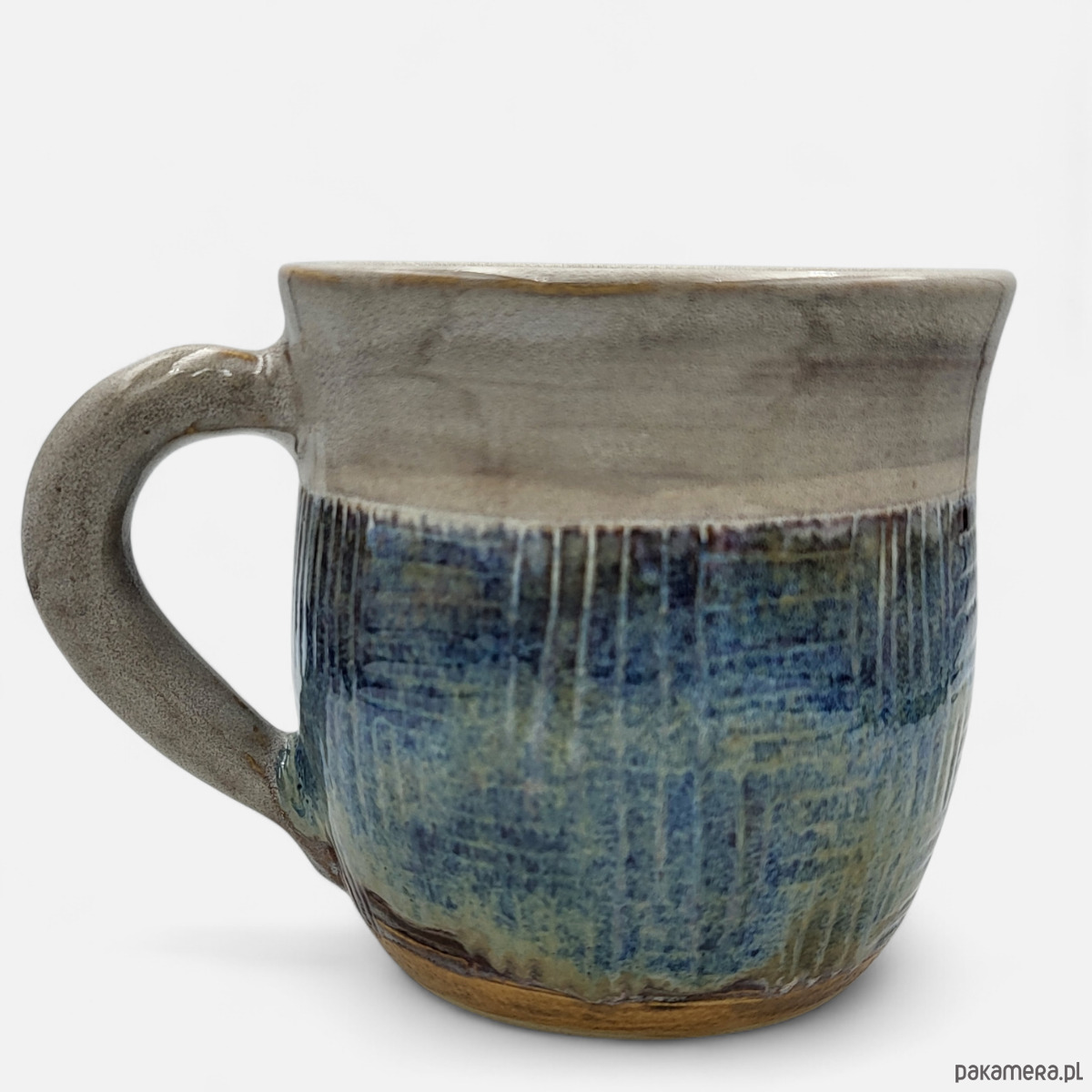 Toczony, ręcznie dekorowany, duży ceramiczny kubek o pojemności 450 ml i wymiarach: