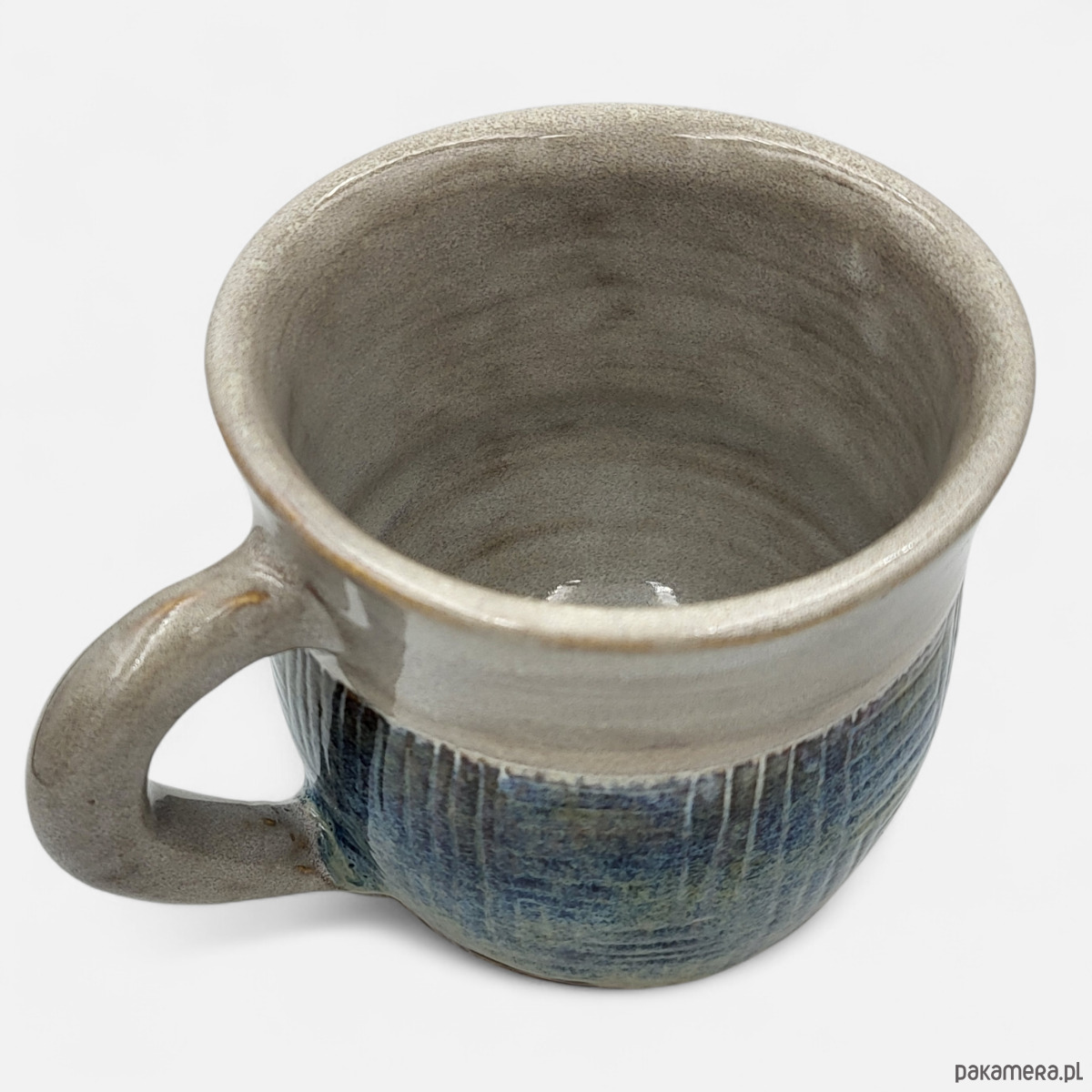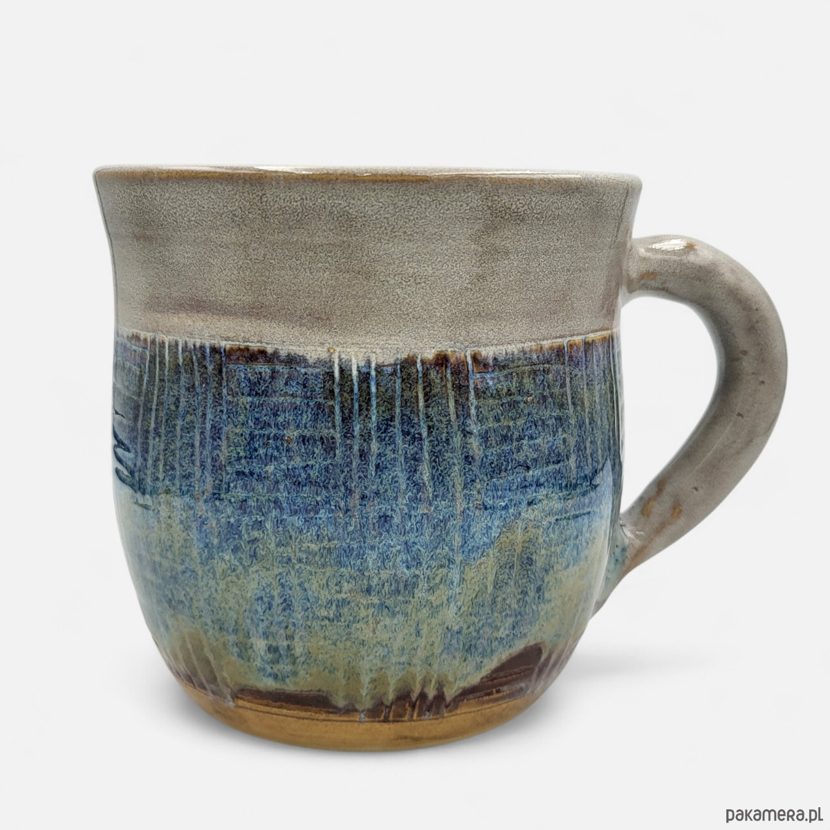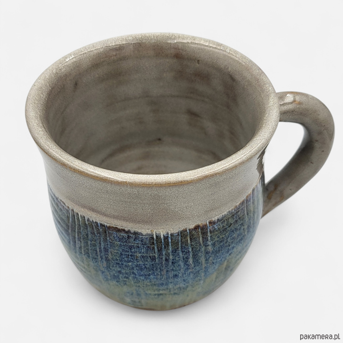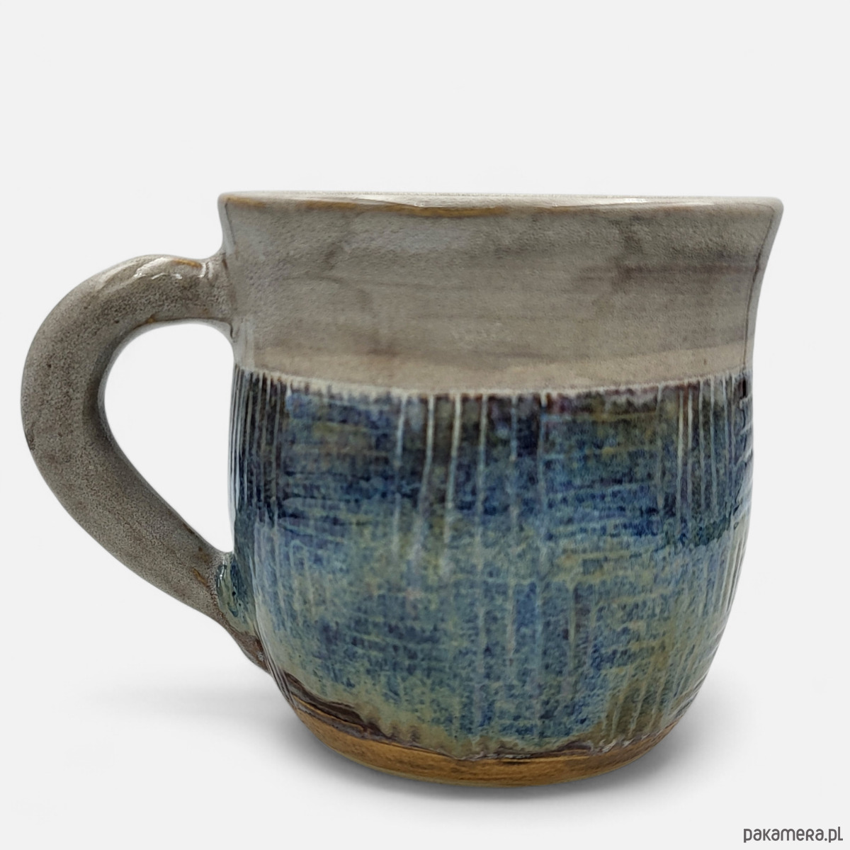 Toczony, ręcznie dekorowany, duży ceramiczny kubek o pojemności 450 ml i wymiarach: