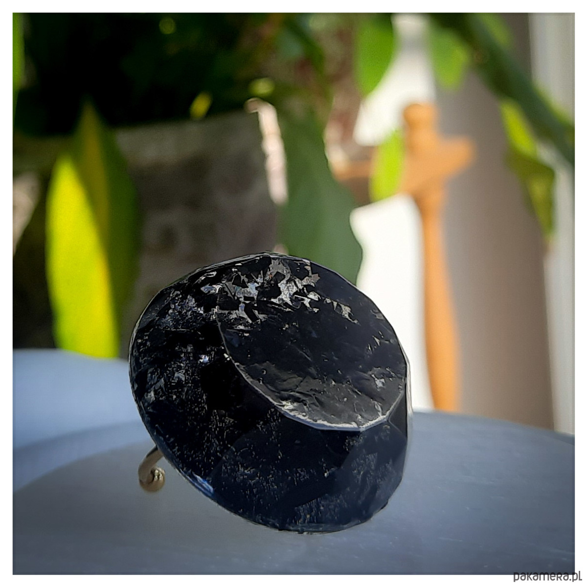 Duży czarny pierścionek, transparentny