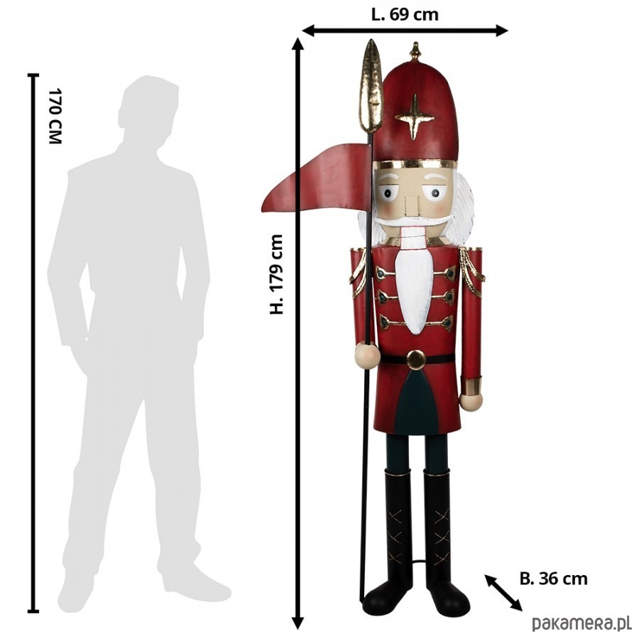 Piękny, duży Dziadek do Orzechów o wysokości aż 179 cm. Wspaniała, bajkowa ozdoba wnętrza. Wykonany z metalu. Pięknie, ręcznie malowany.