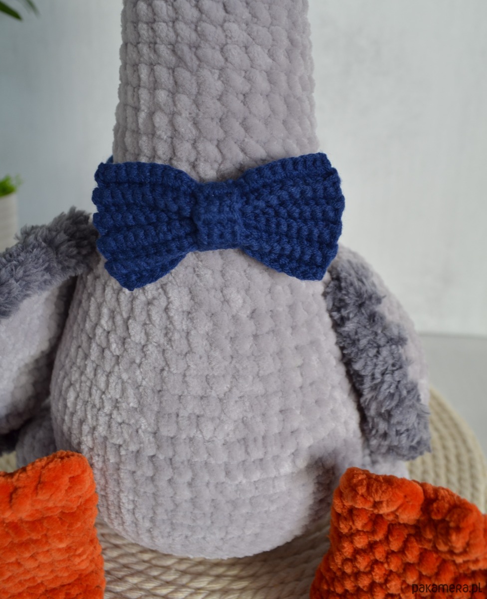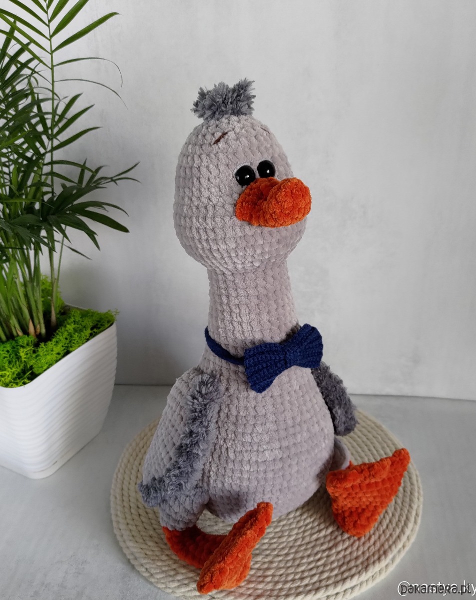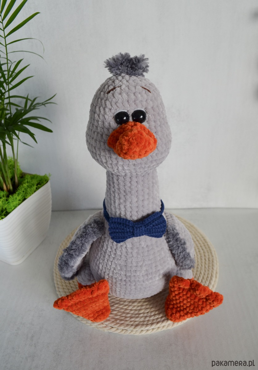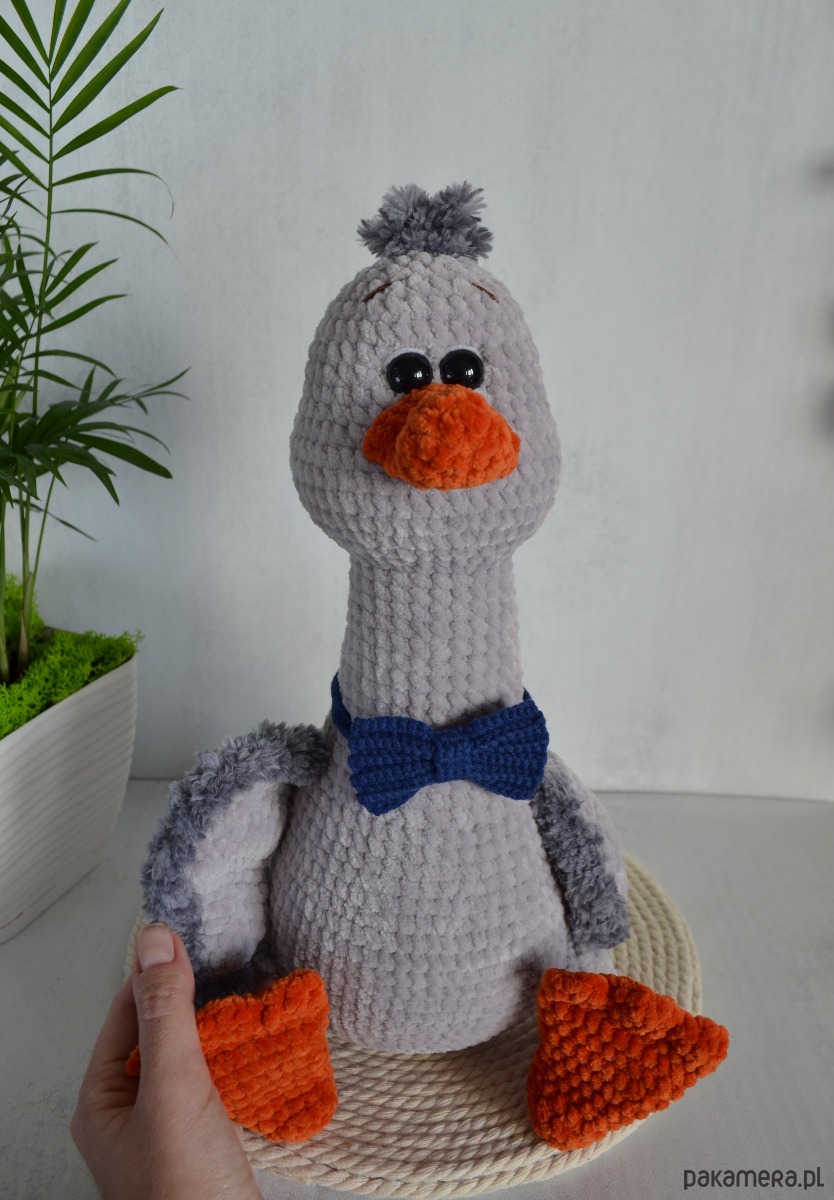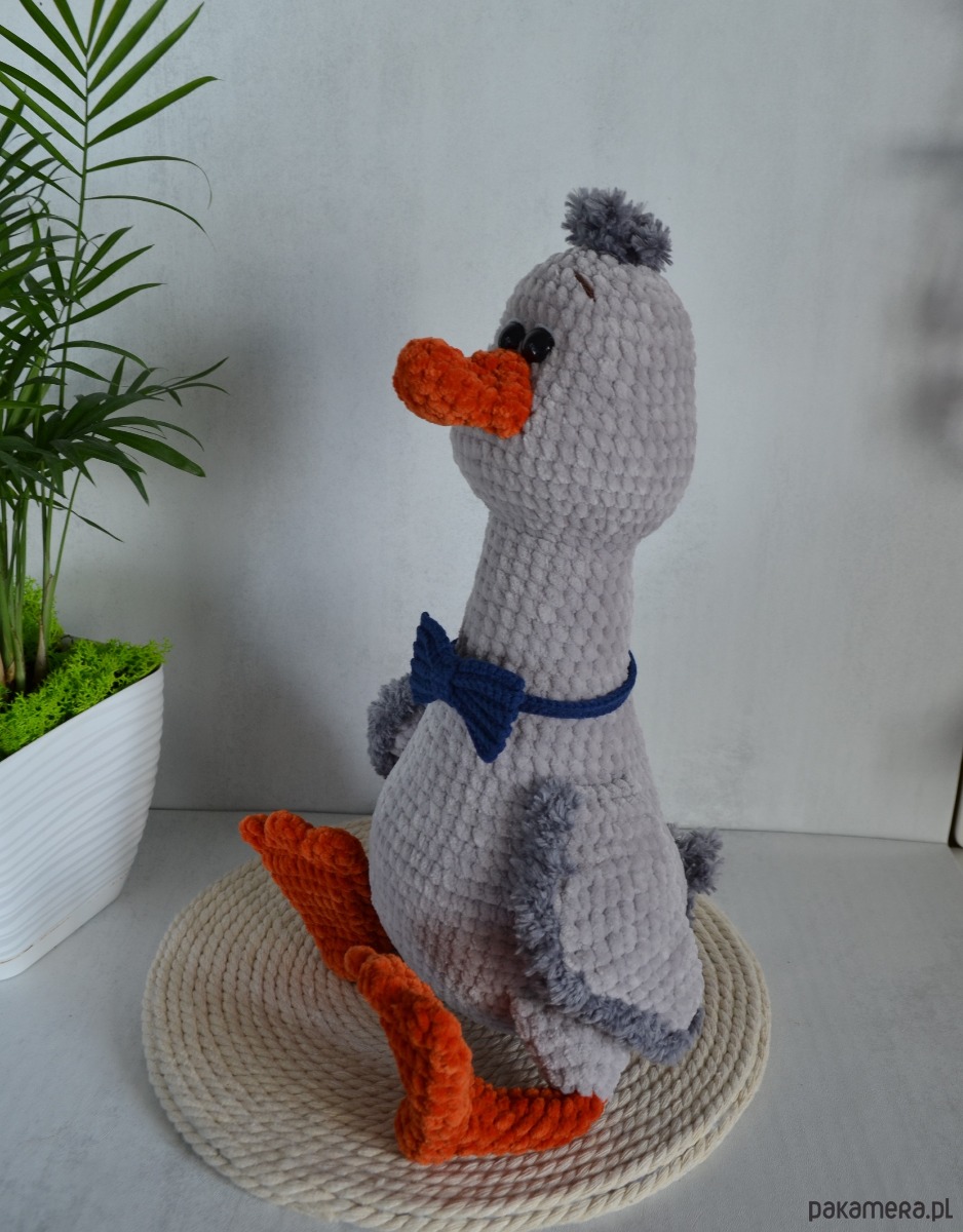 - Wykonany gąsior z miękkiej pluszowej włóczki. Bardzo słodki i miły w dotyku!