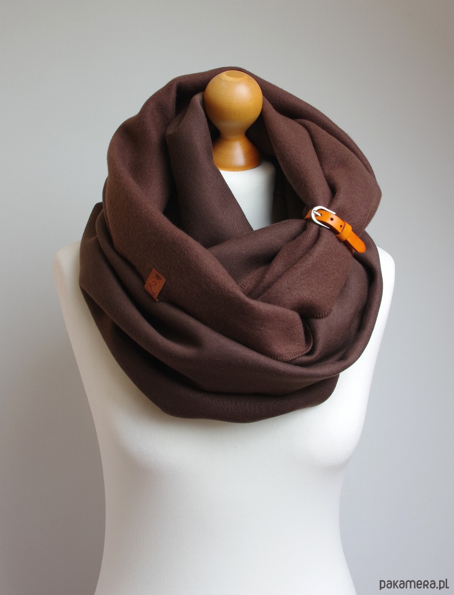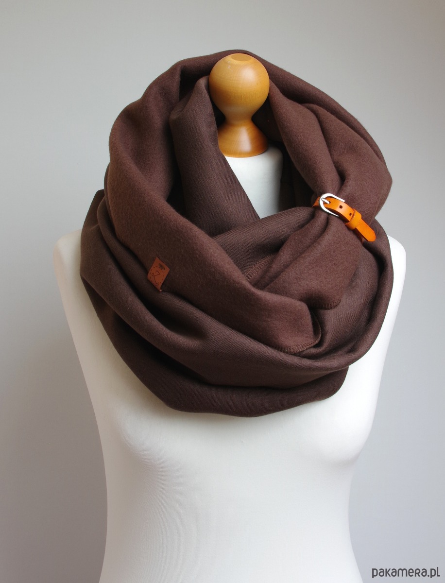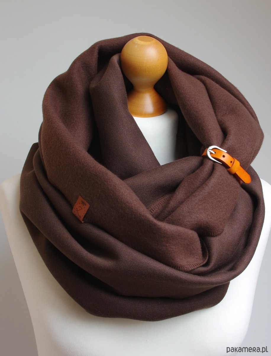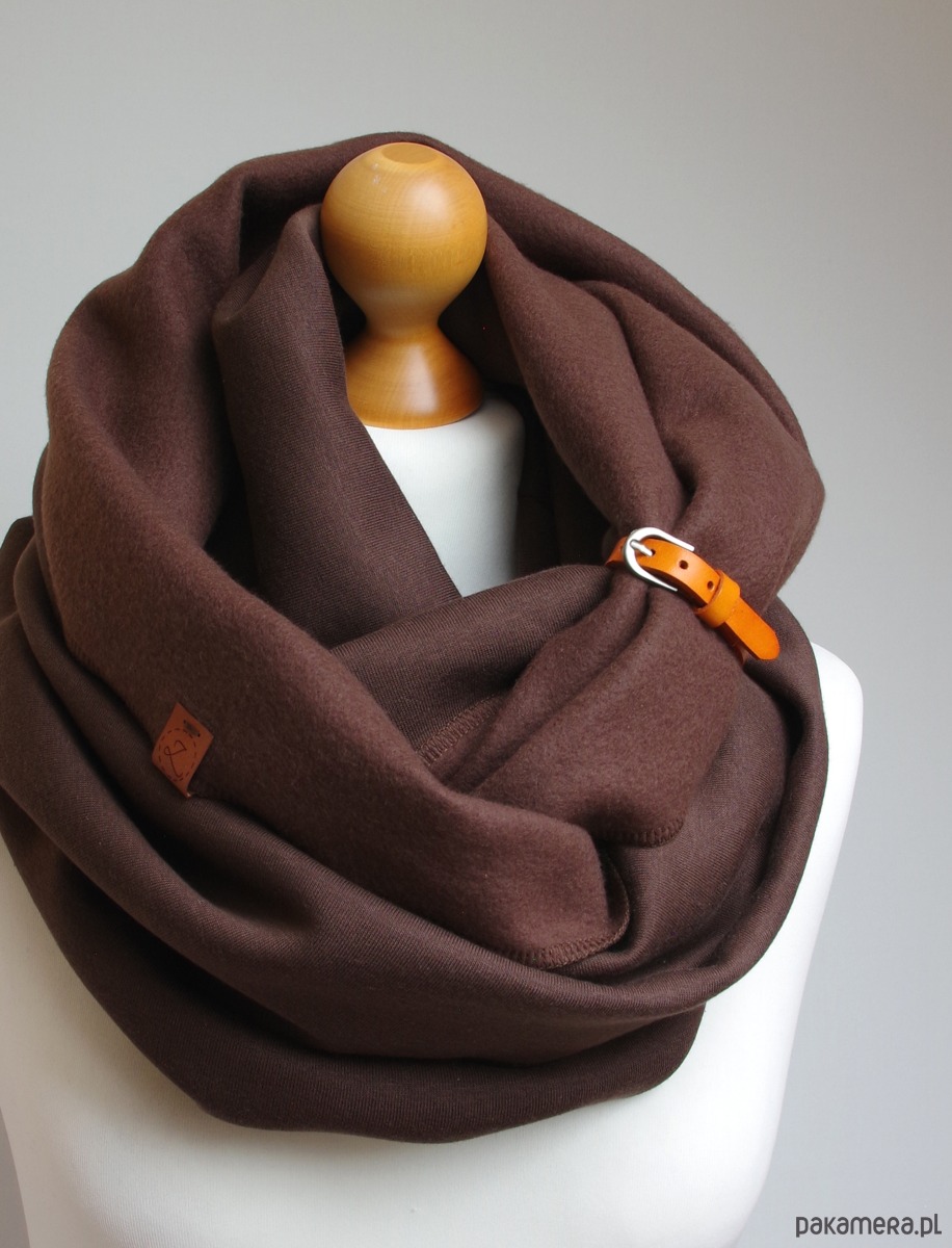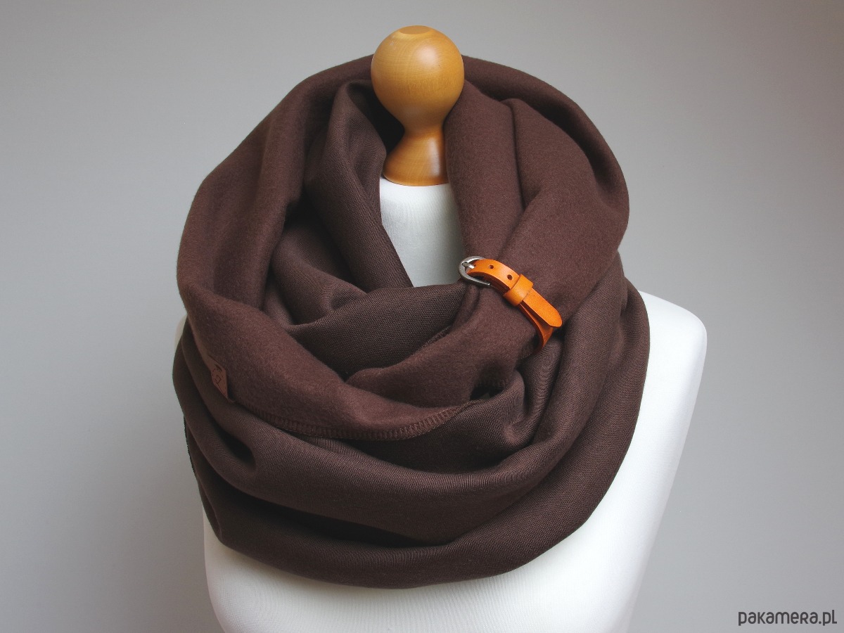 Zimowy komin dresowy damski – w CZEKOLADOWYM brązie z zapinką skórzaną