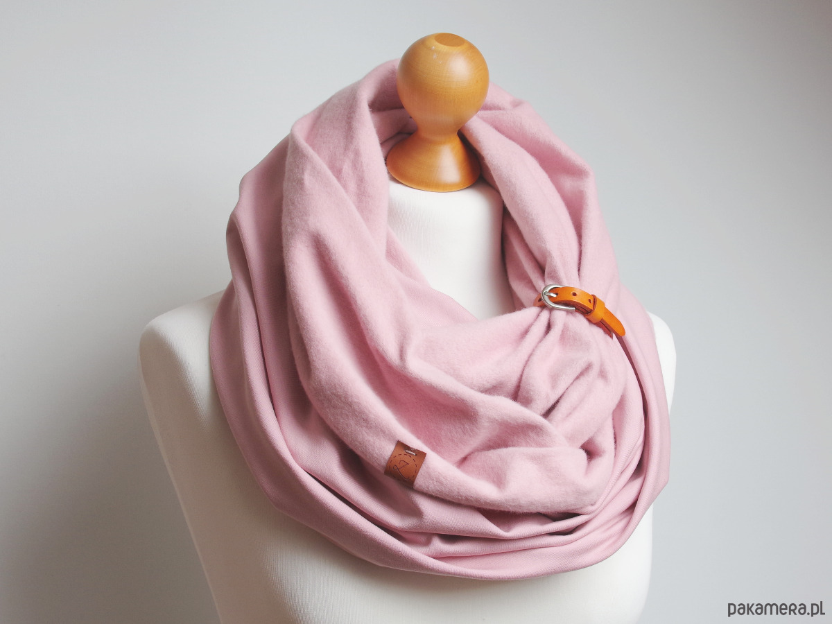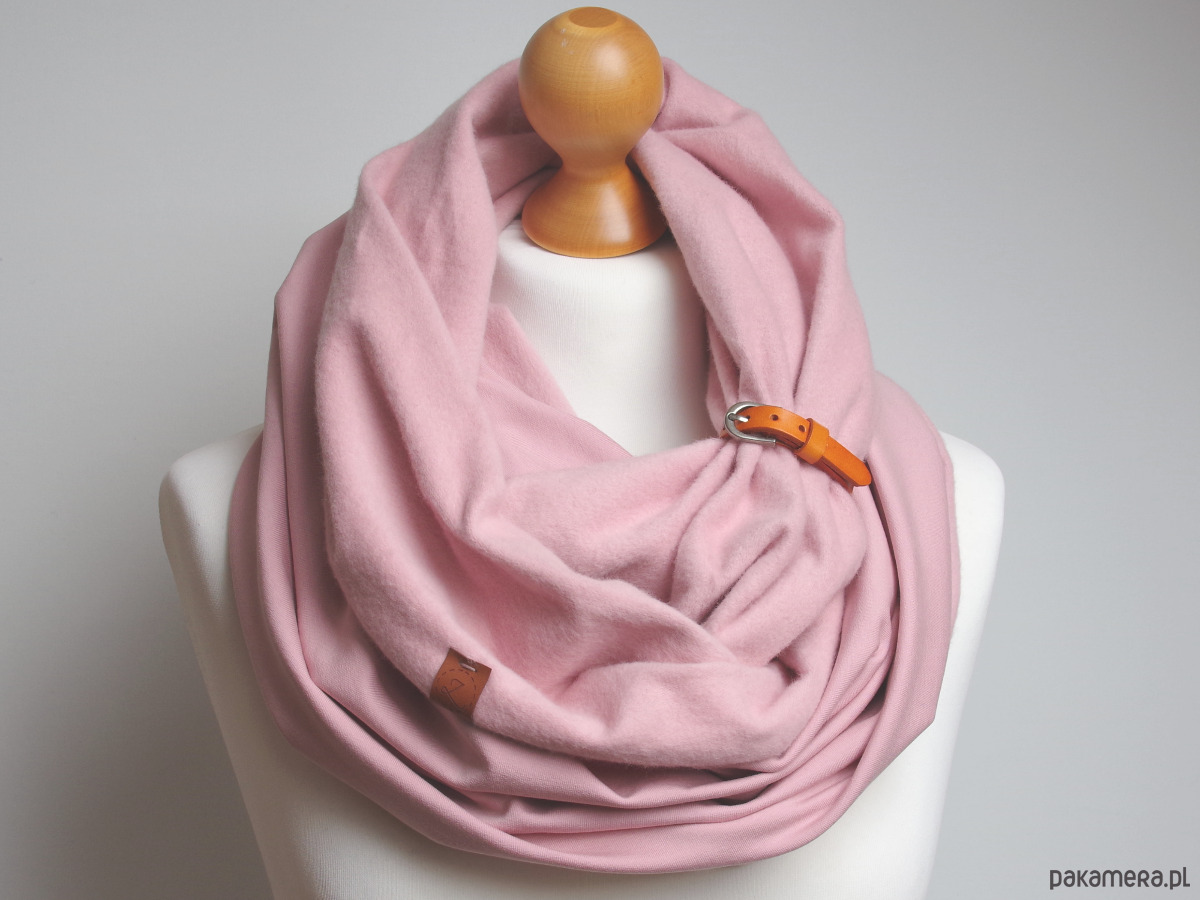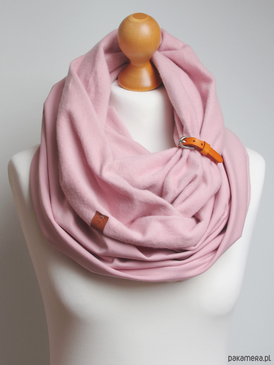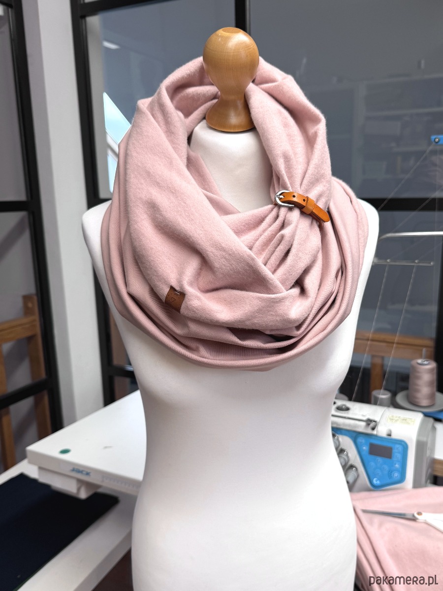 Zimowy komin dresowy damski – ROSE PINK brąz z zapinką skórzaną
