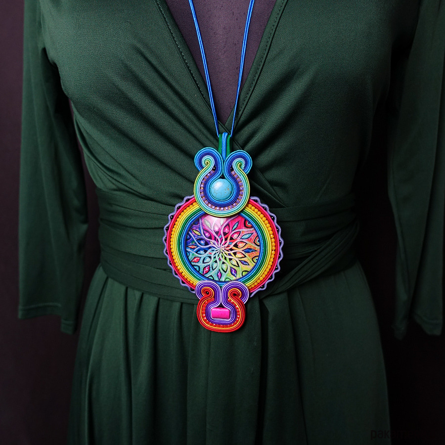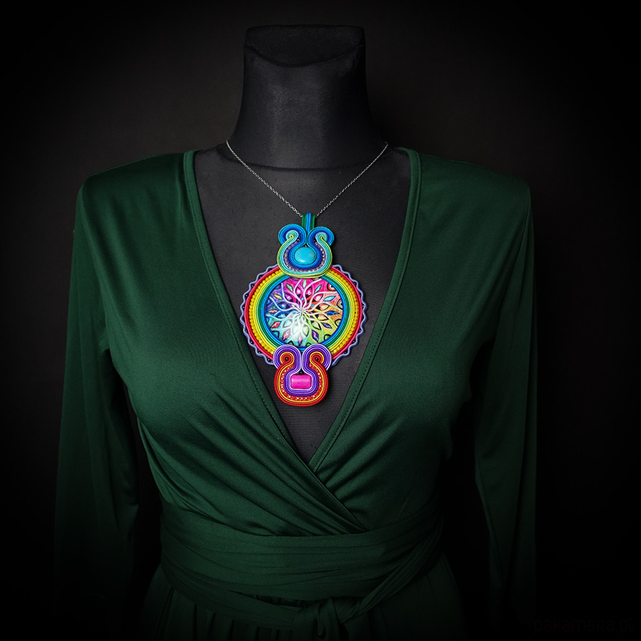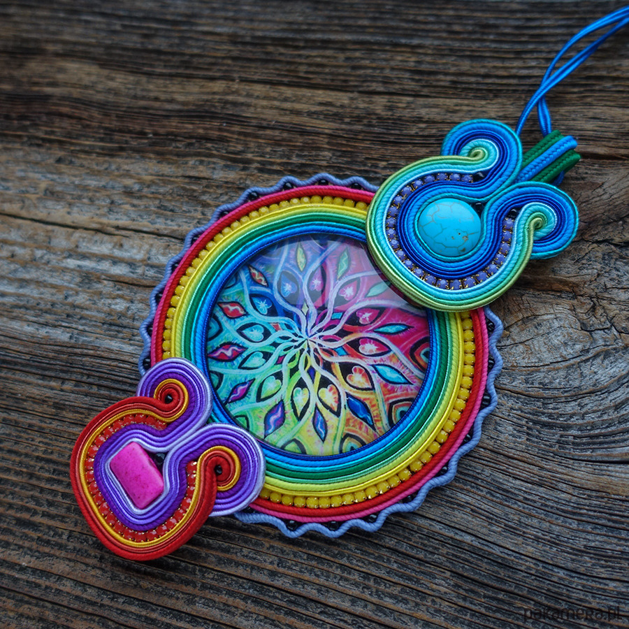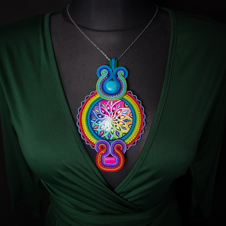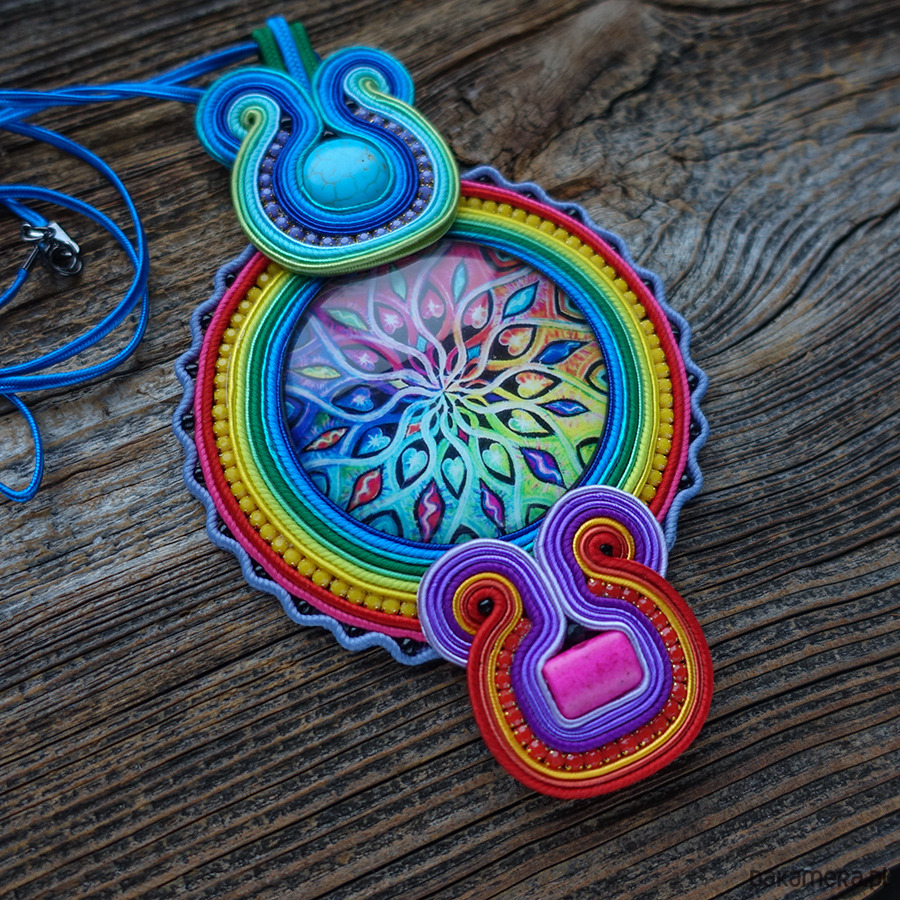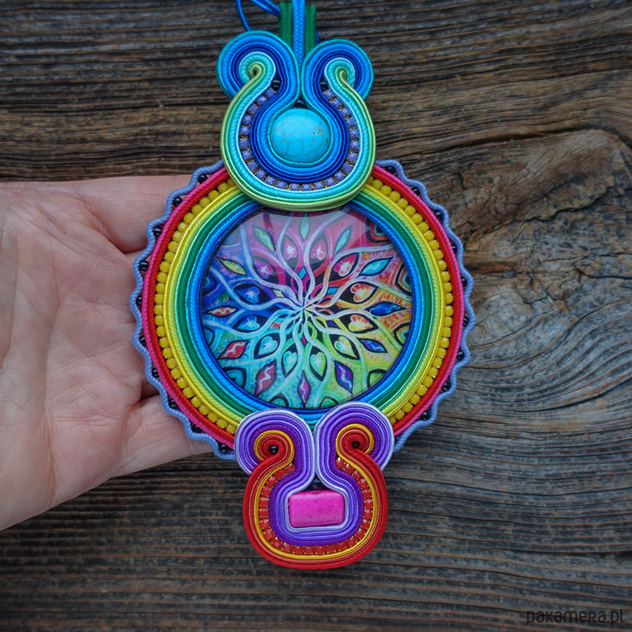 Duży i kolorowy wisior soutache z mandalą