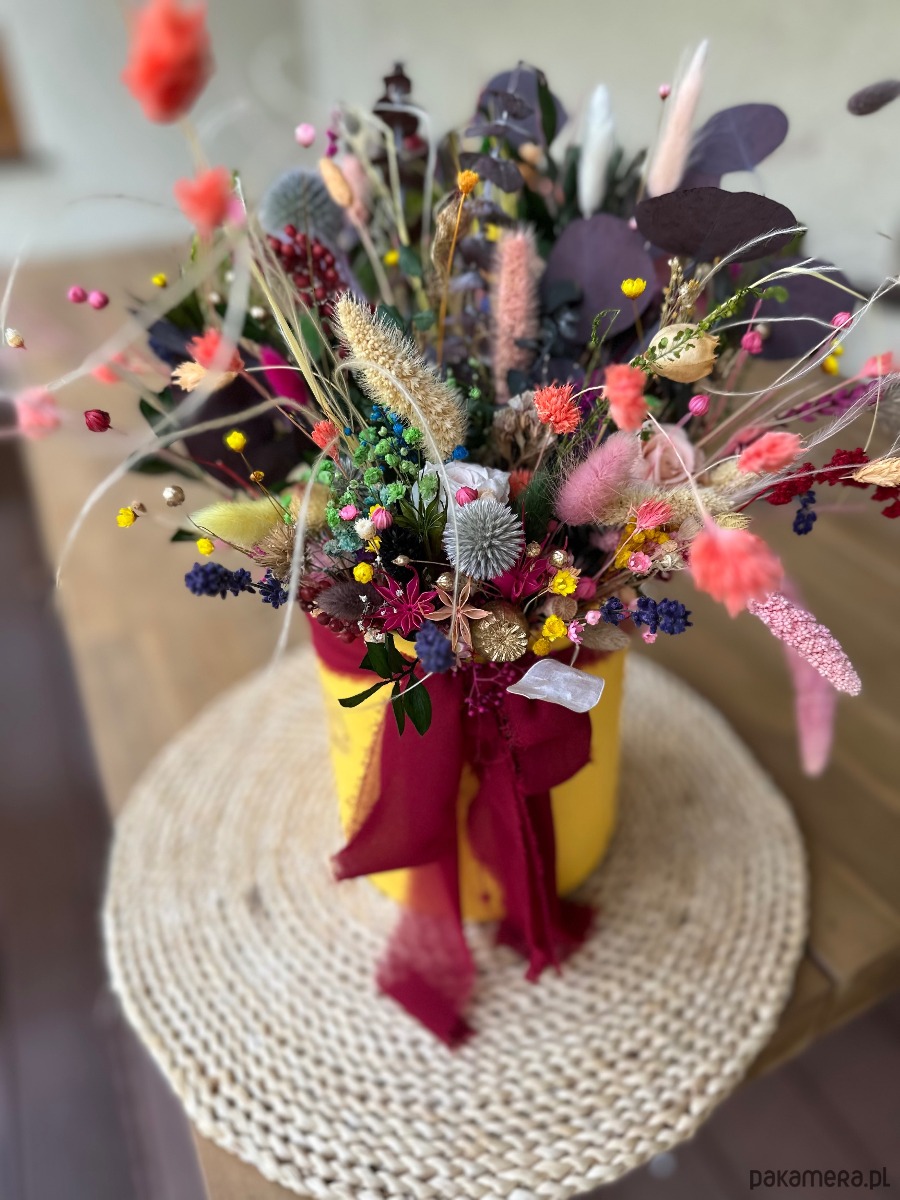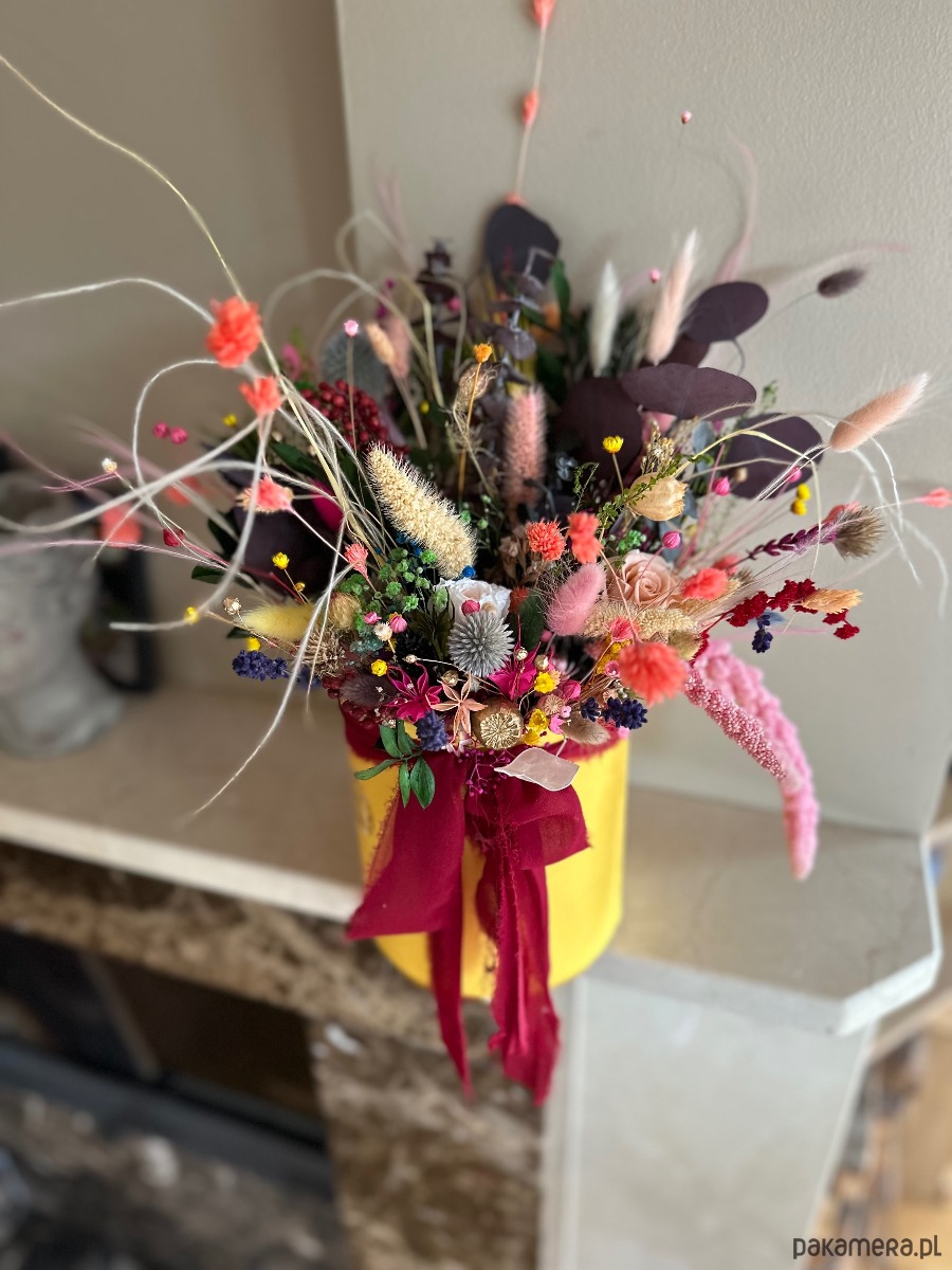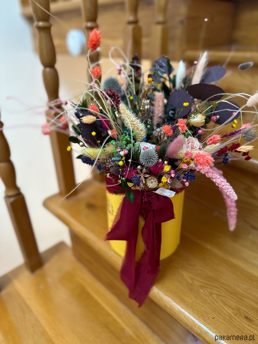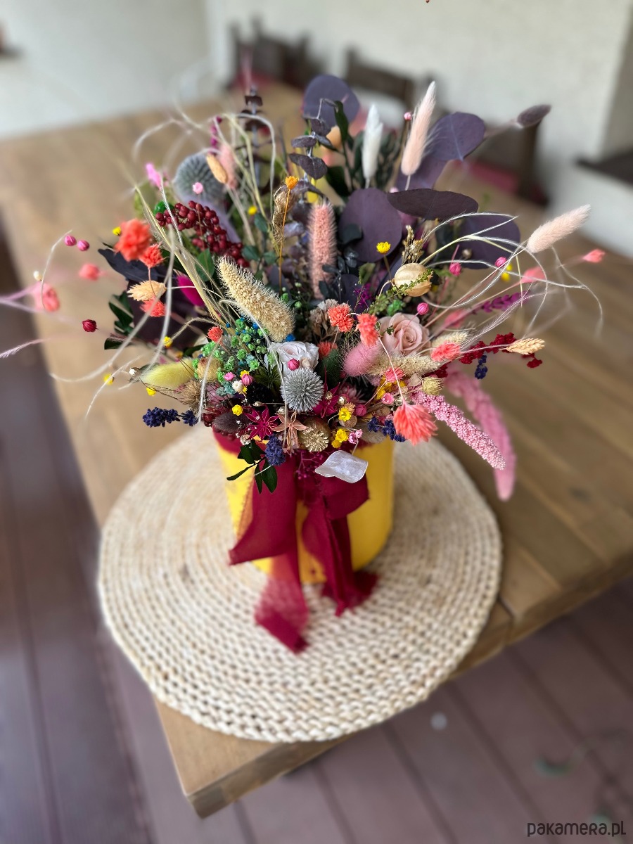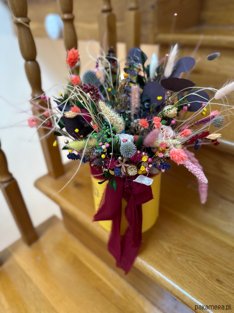 Flowerbox jesienny, kolorowy z wykorzystaniem roślinności suszonej i stabilizowanej 🥀🌾