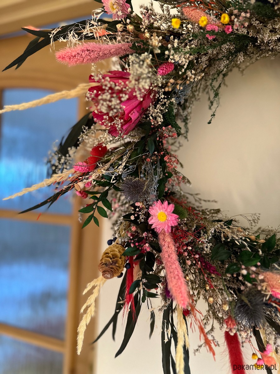Wianek sprawdzi się, jako dekoracja ściany, drzwi, okna, lustra czy stołu.