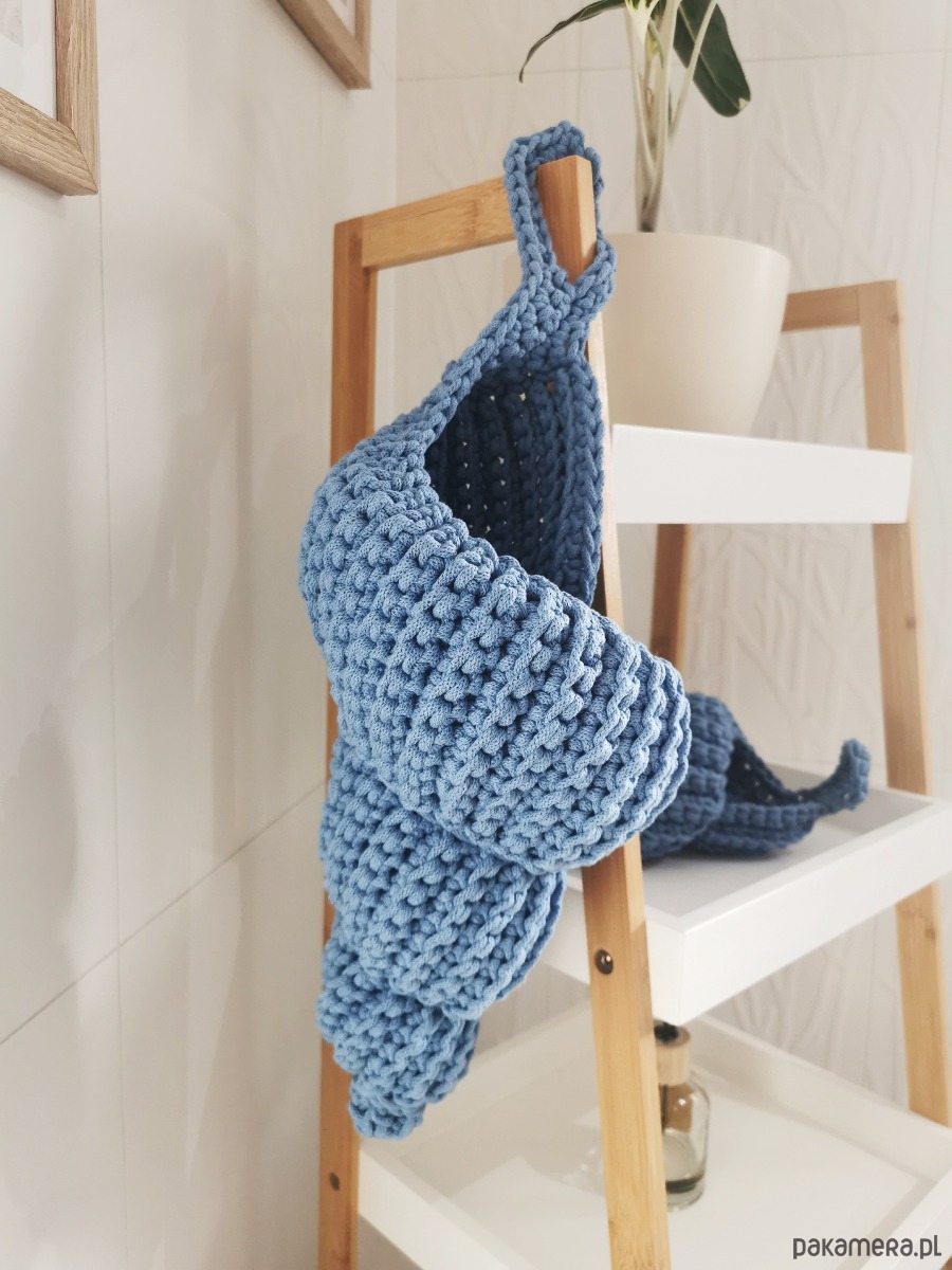 Materiał: sznurek bawełniany -prać ręcznie lub w pralce (30 stopni). Nie suszyć w suszarce bębnowej.
