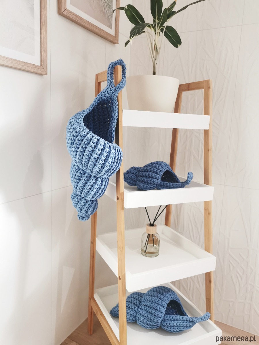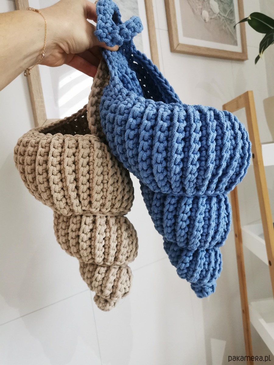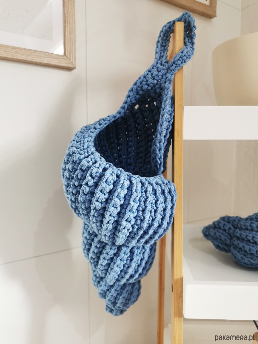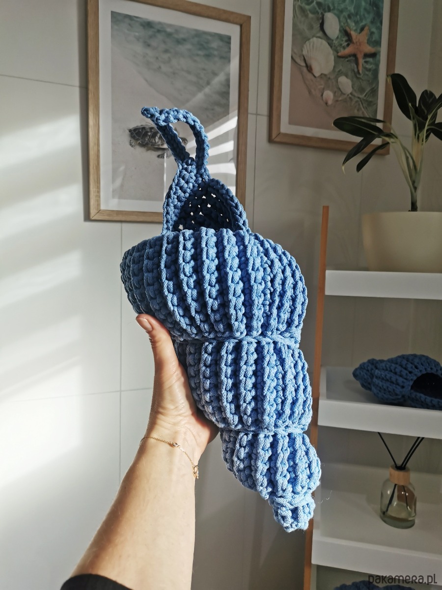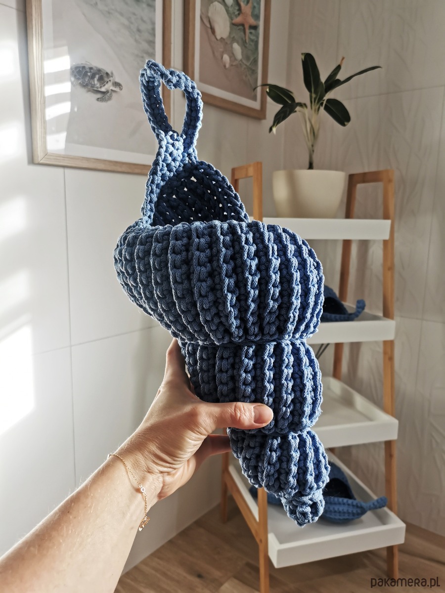 Wprowadź do swojego wnętrza nutę nadmorskiego klimatu dzięki wiszącemu koszowi w kształcie muszelki - wykonany ręcznie z miękkiego bawełnianego sznurka. Ten wyjątkowy kosz o długości 40 cm nie tylko pomieści drobiazgi, ale także będzie subtelną i stylową dekoracją Twojego domu.